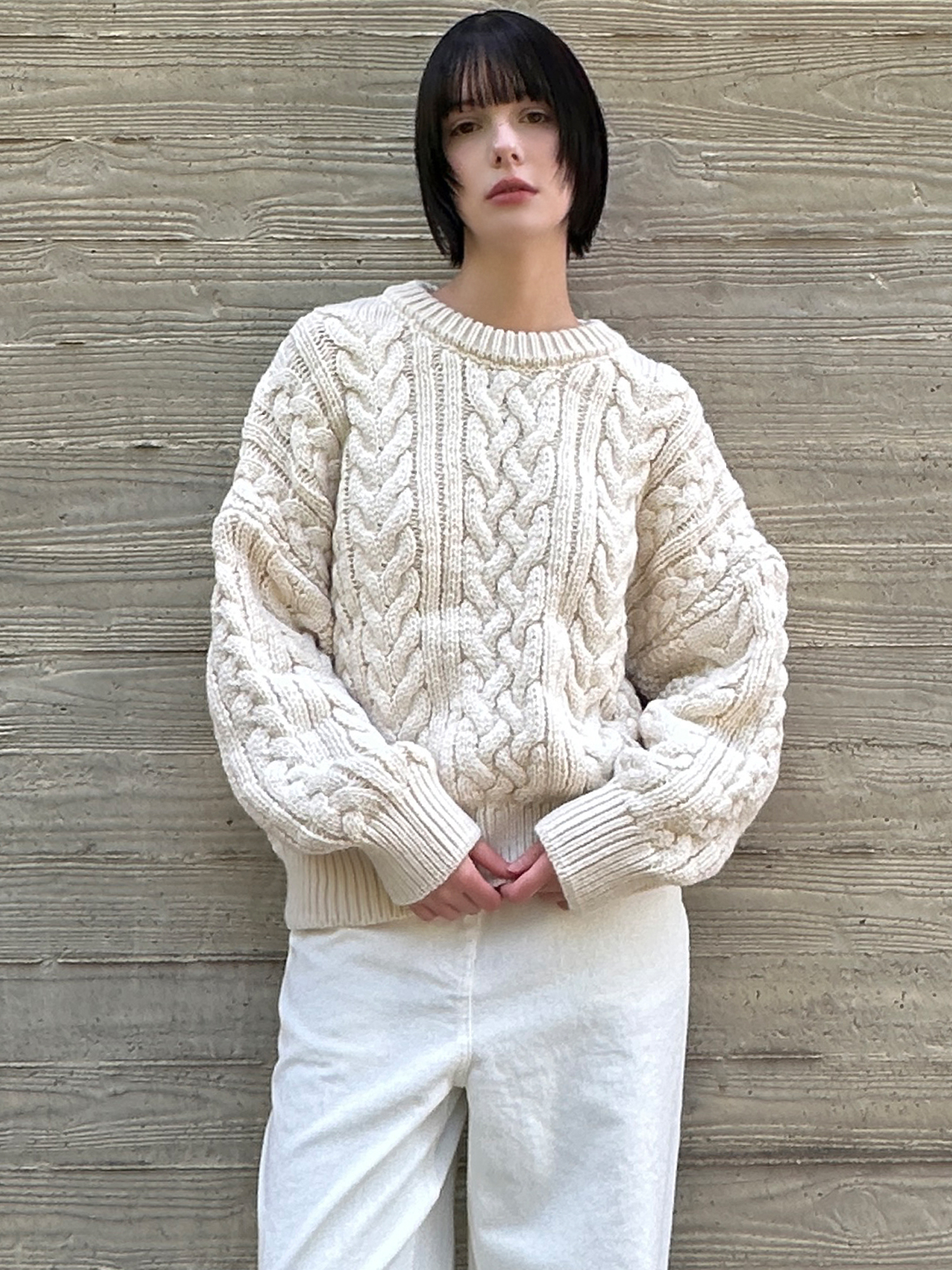 오버사이즈 피셔맨 케이블 니트_IVORY