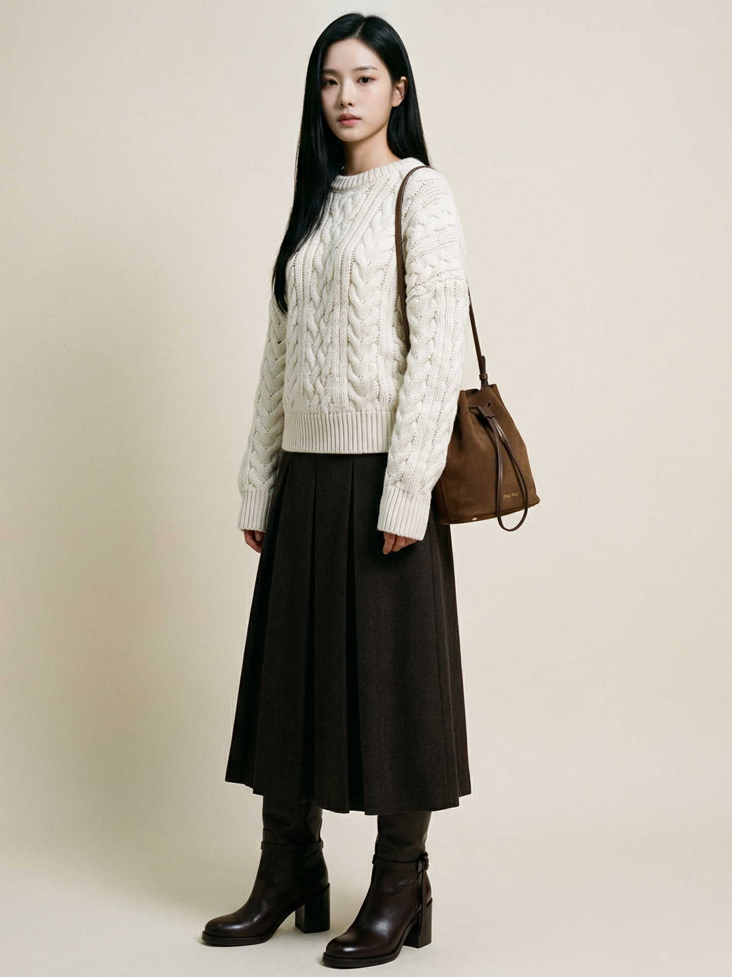 오버사이즈 피셔맨 케이블 니트_IVORY