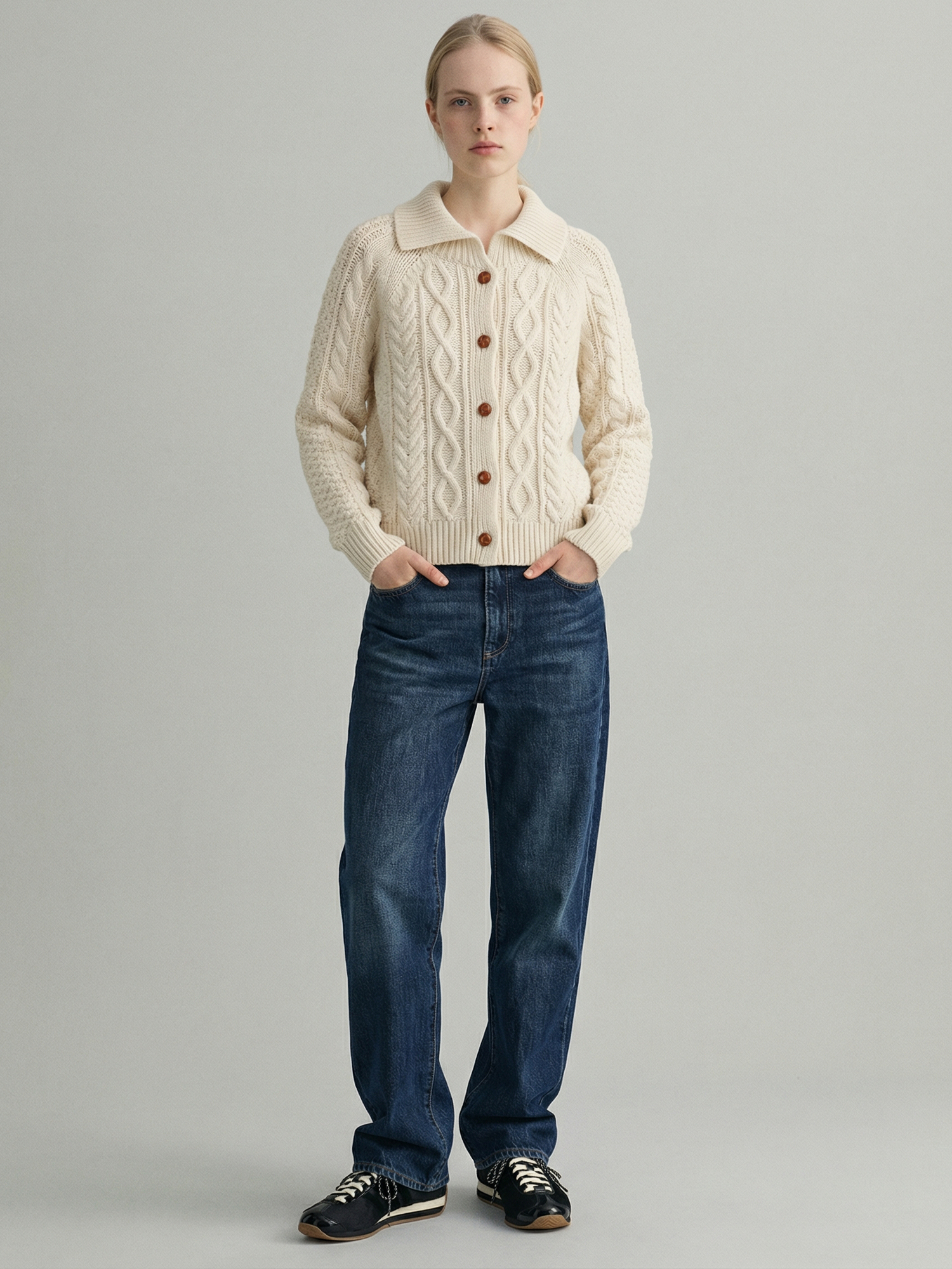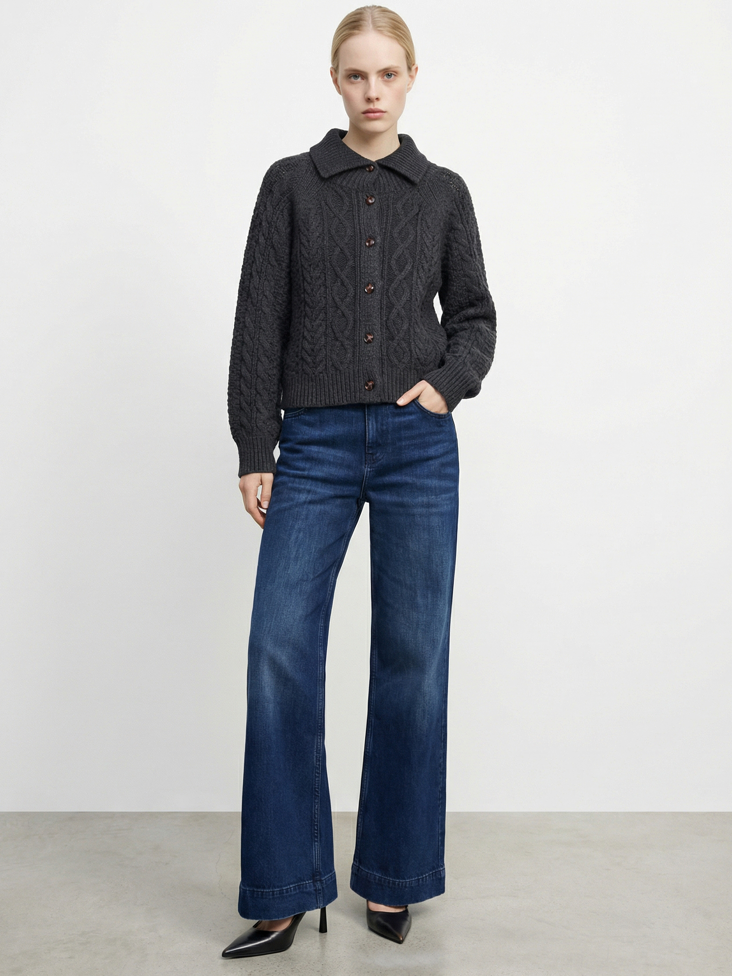 메리노울 그랜마 케이블 가디건_CHARCOAL GREY