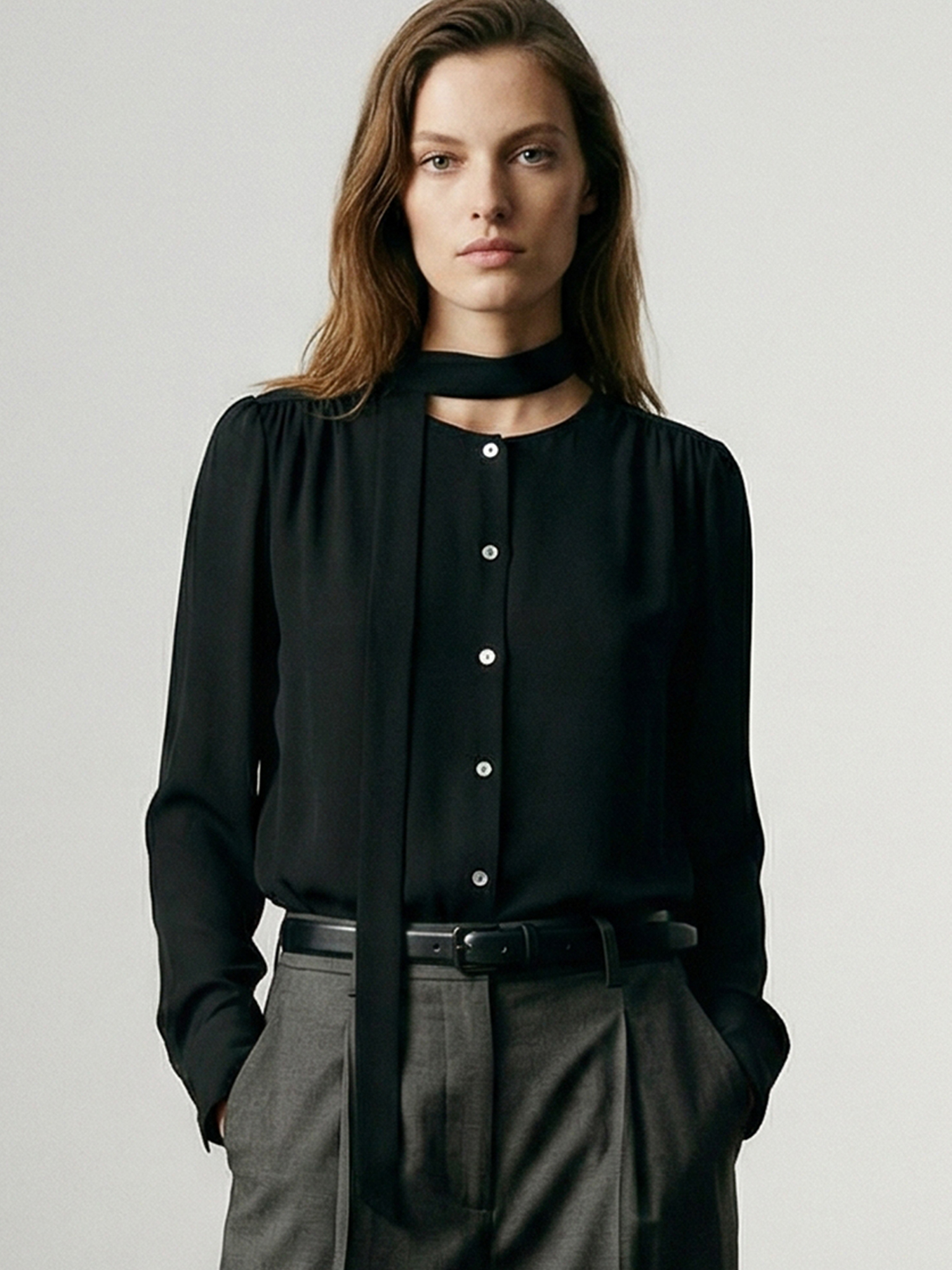 맨살에 닿아도 자극이 없는 레이온 혼방 소재로 제작한 블라우스입니다.