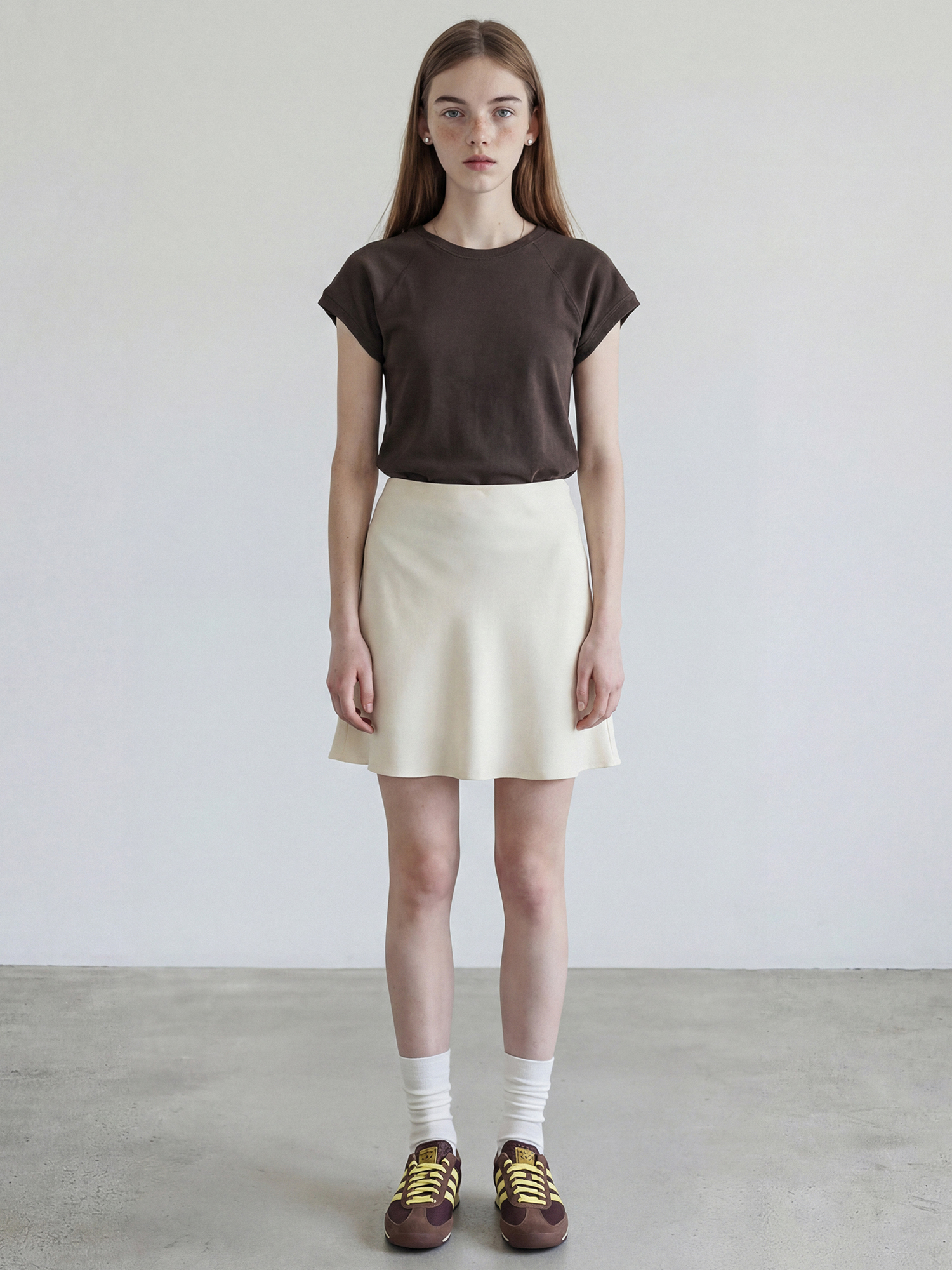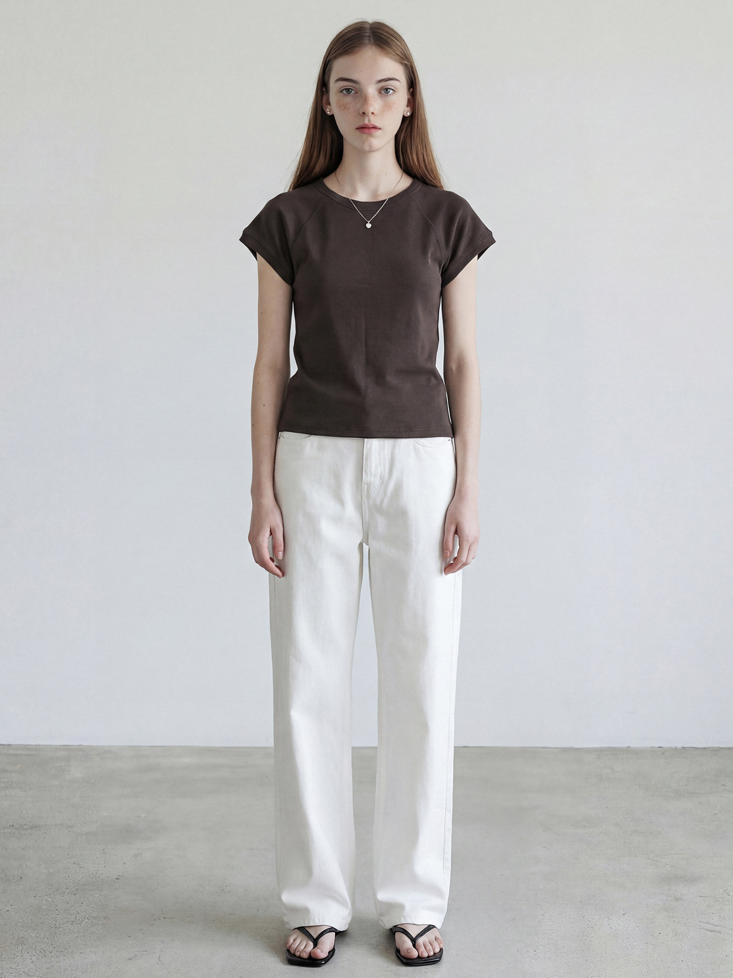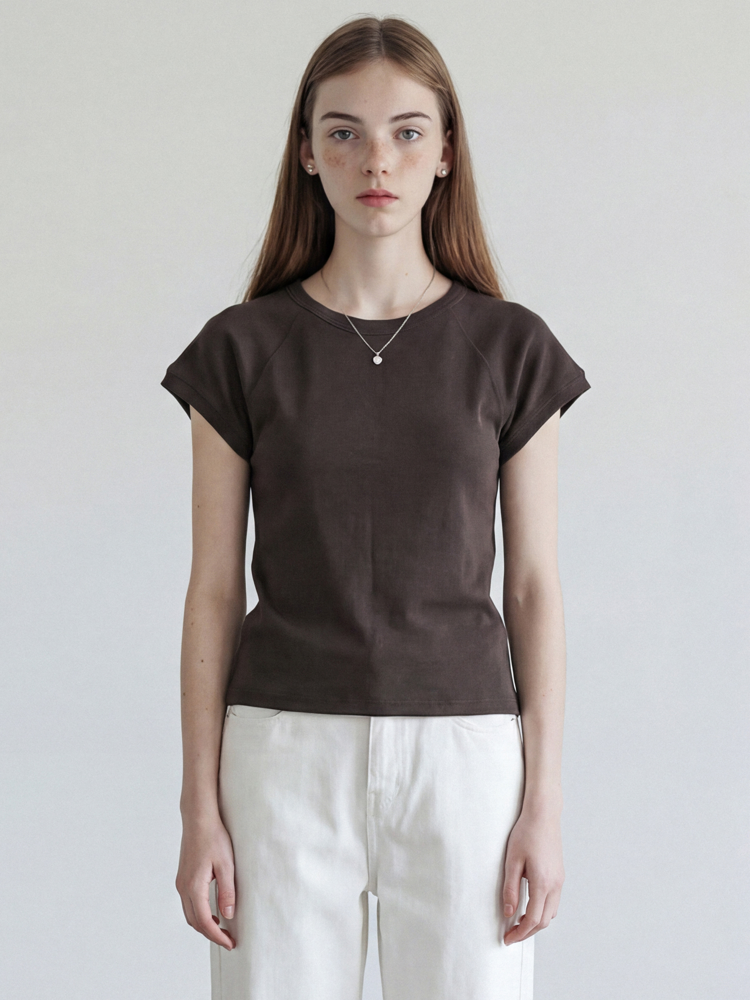 래글런 소매 라인으로 어깨선을 부드럽게 감싸주며, 자연스럽게 떨어지는 슬림핏의 티셔츠입니다.