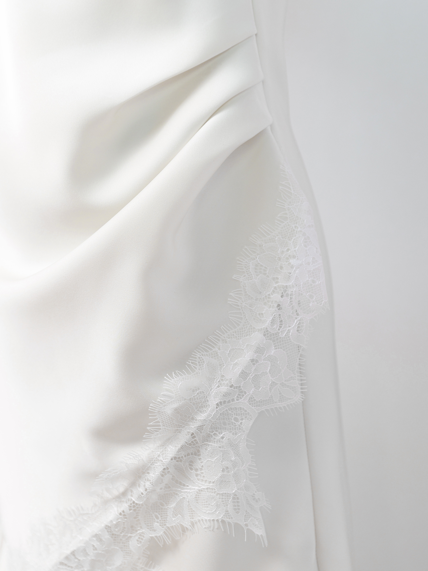 *랩 스타일의 스커트 패널과 레이스 트리밍