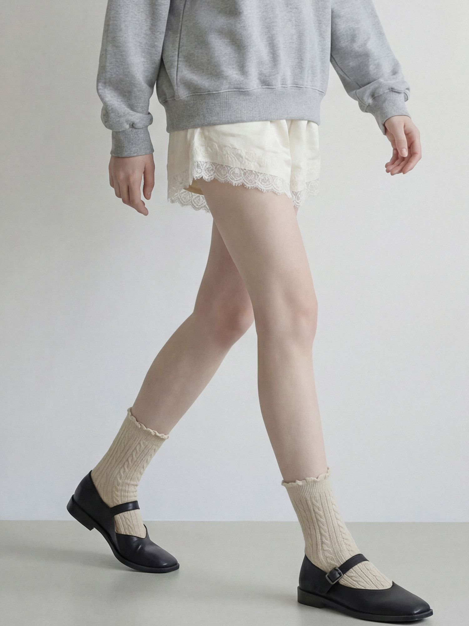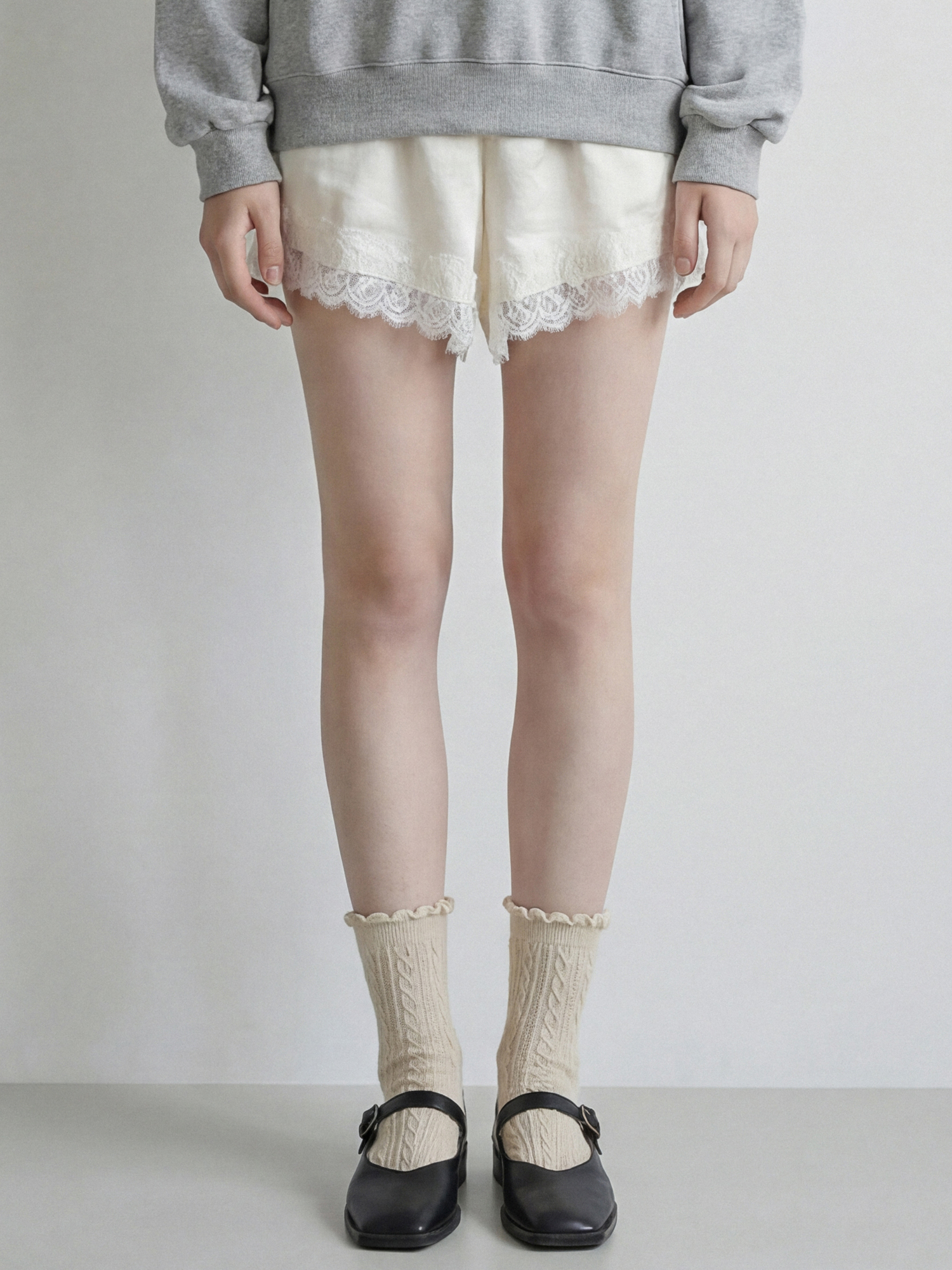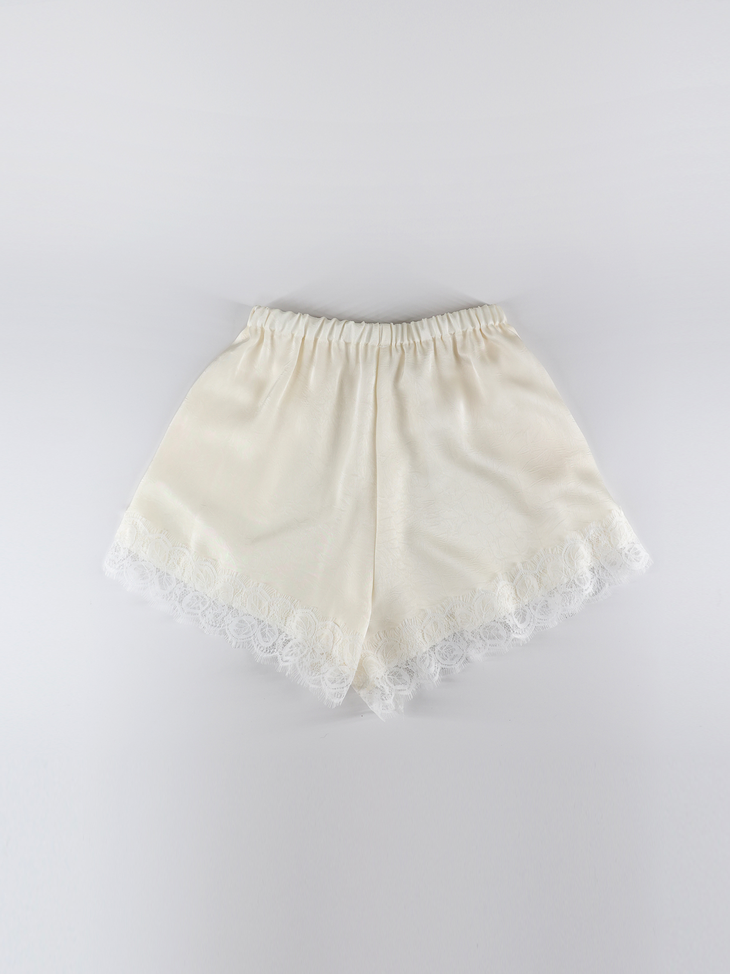 부드러운 광택감의 새틴소재에 레이스 트리밍을 더한 쇼츠입니다.