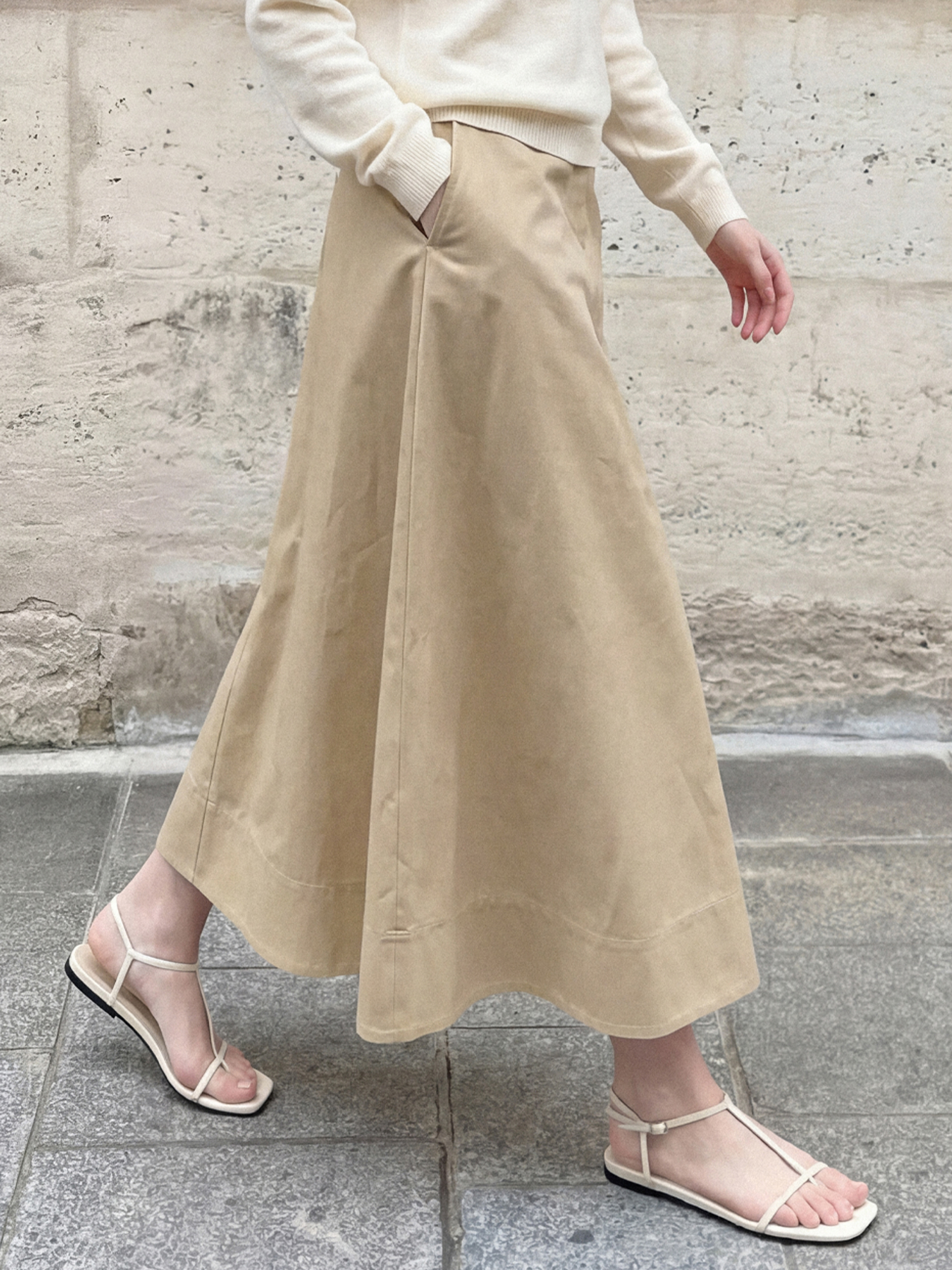 구김적고 관리가 편한 코튼 투일 소재로 제작한 스커트입니다.