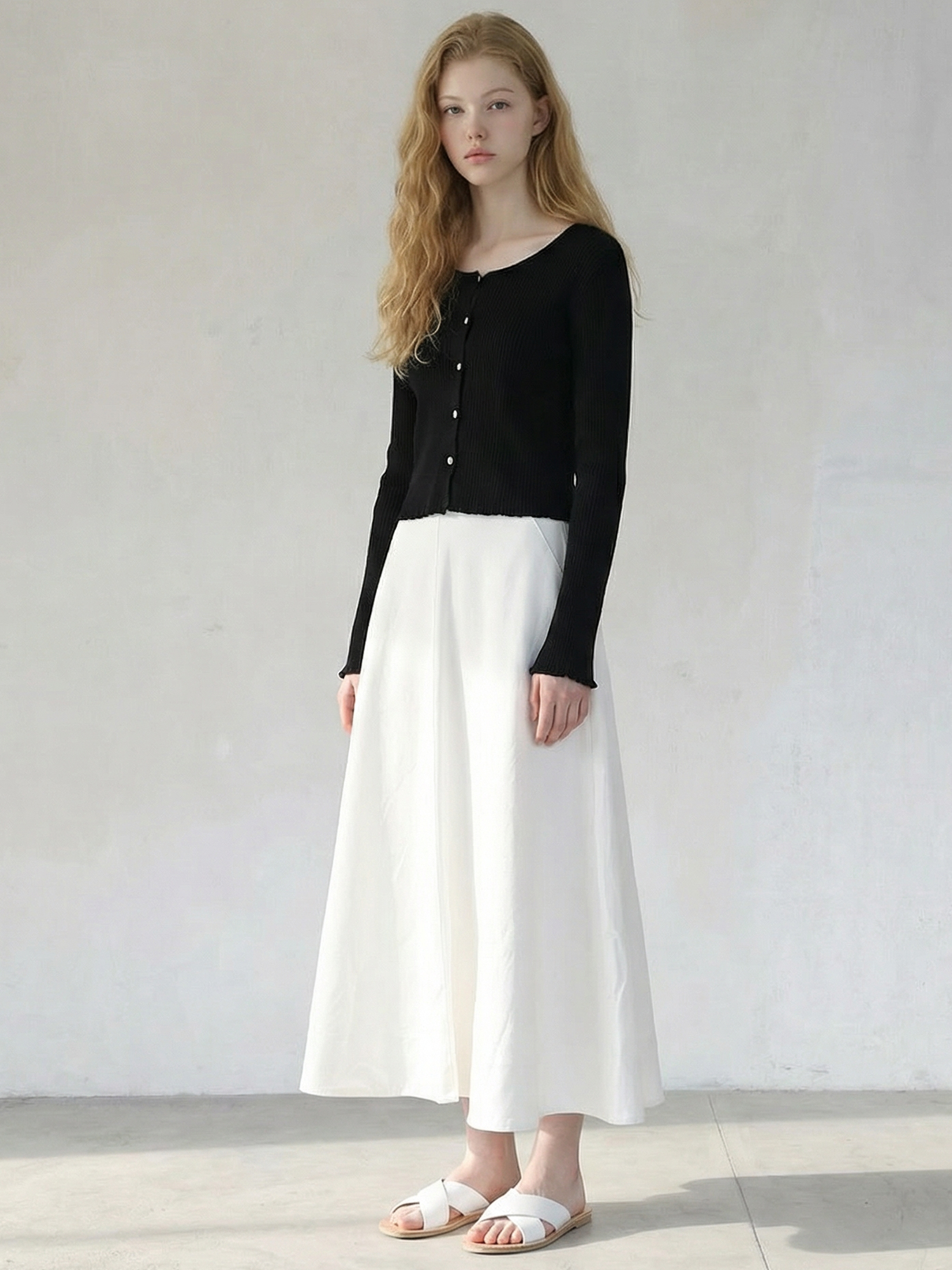 밑단을 두겹으로 처리하여 드라마틱한 플레어 실루엣이 유지됩니다.
