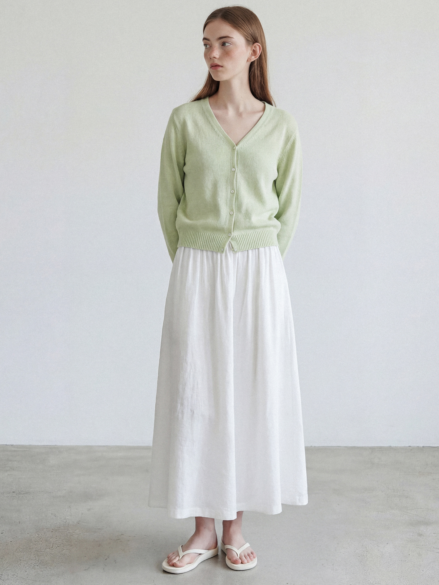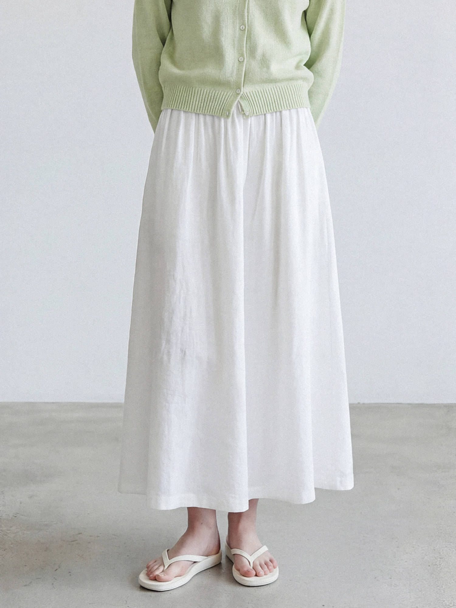 비스코스 플레어 밴딩 스커트_WHITE