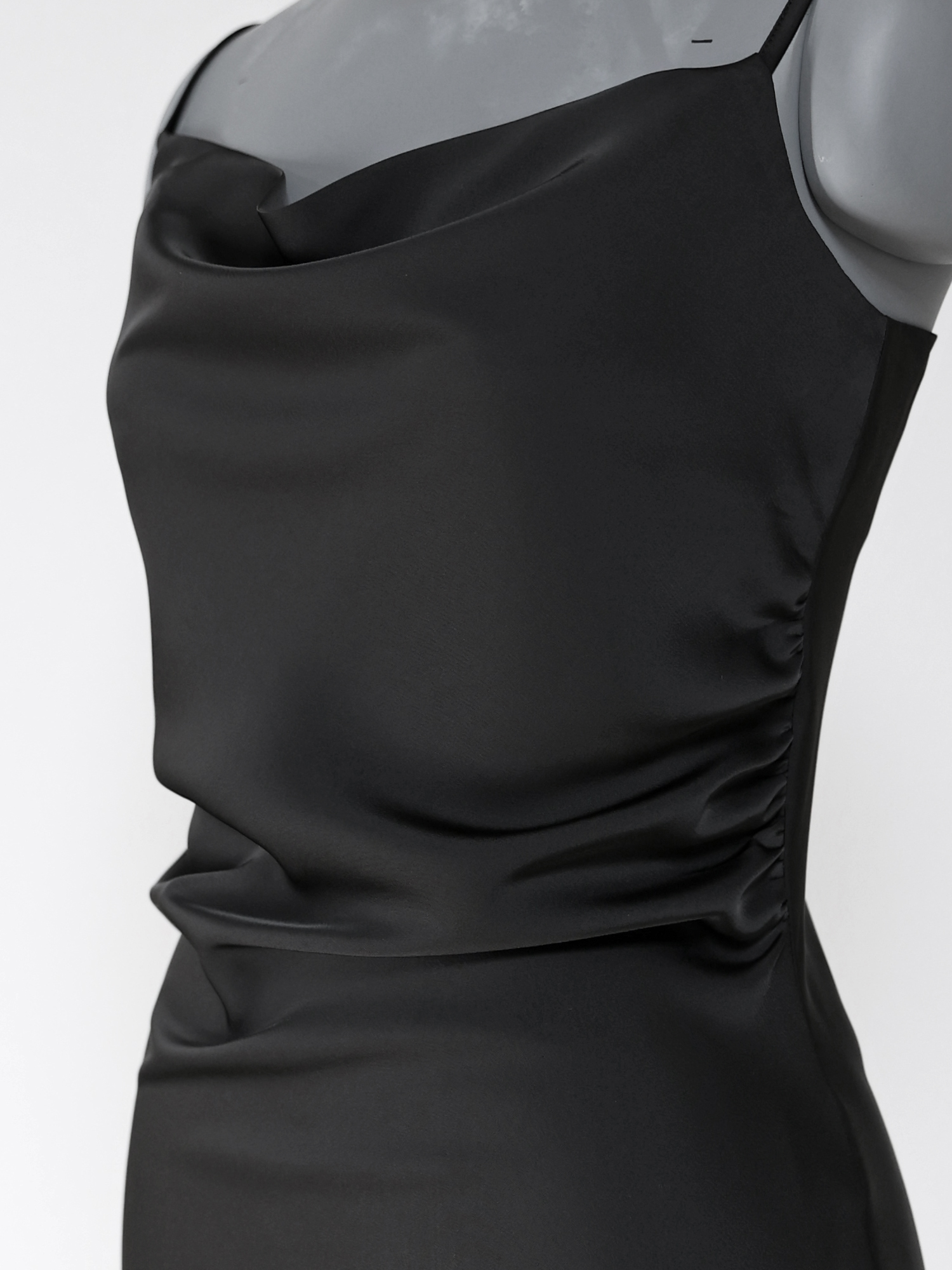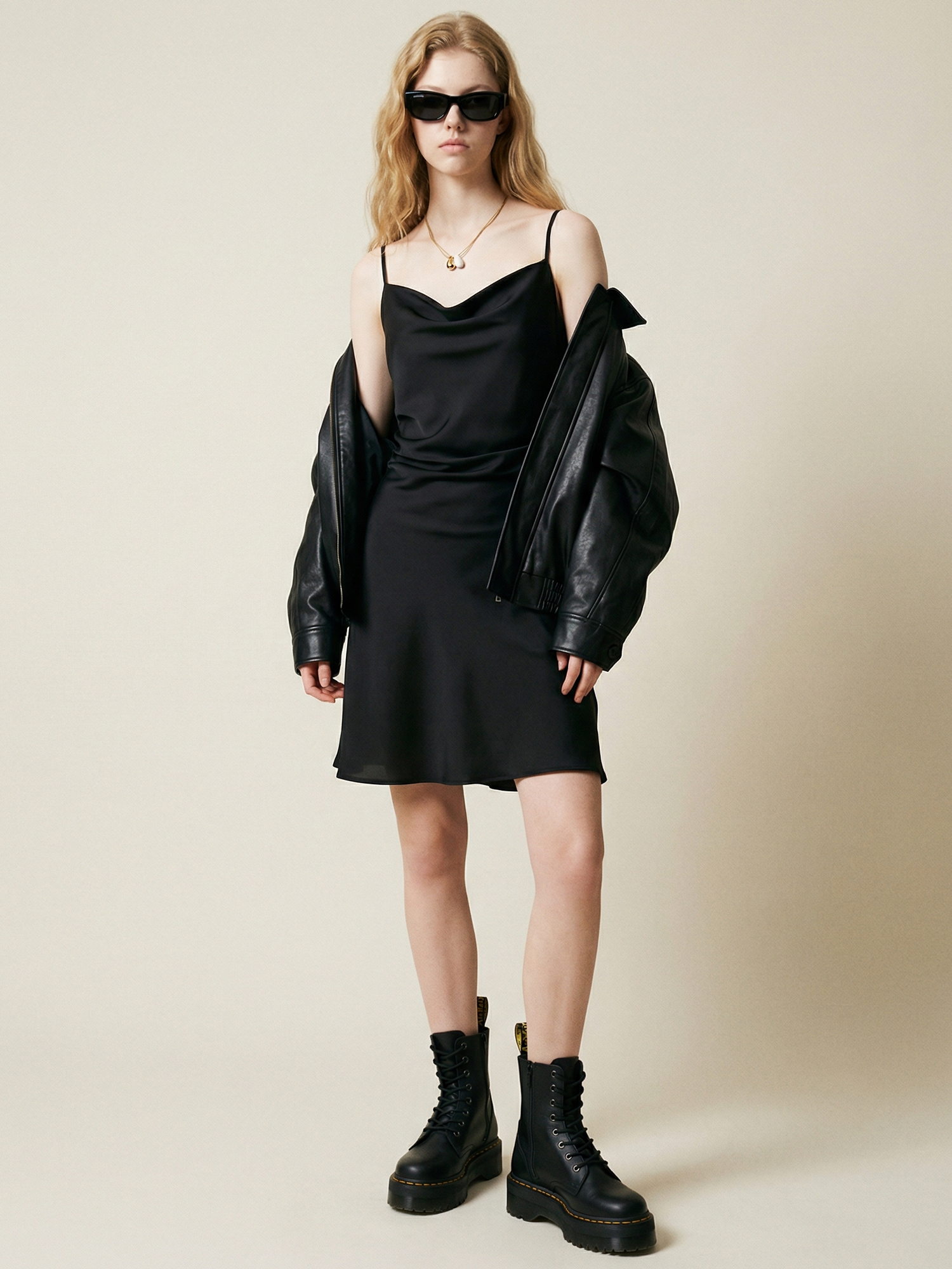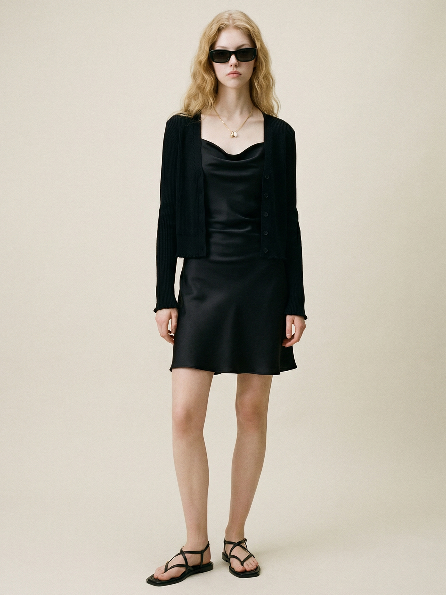 부드러운 광택감의 새틴 소재로 휴양지나 파티룩은 물론 가벼운 아우터와 함께 데일리로도 활용하기 좋은 아이템입니다.