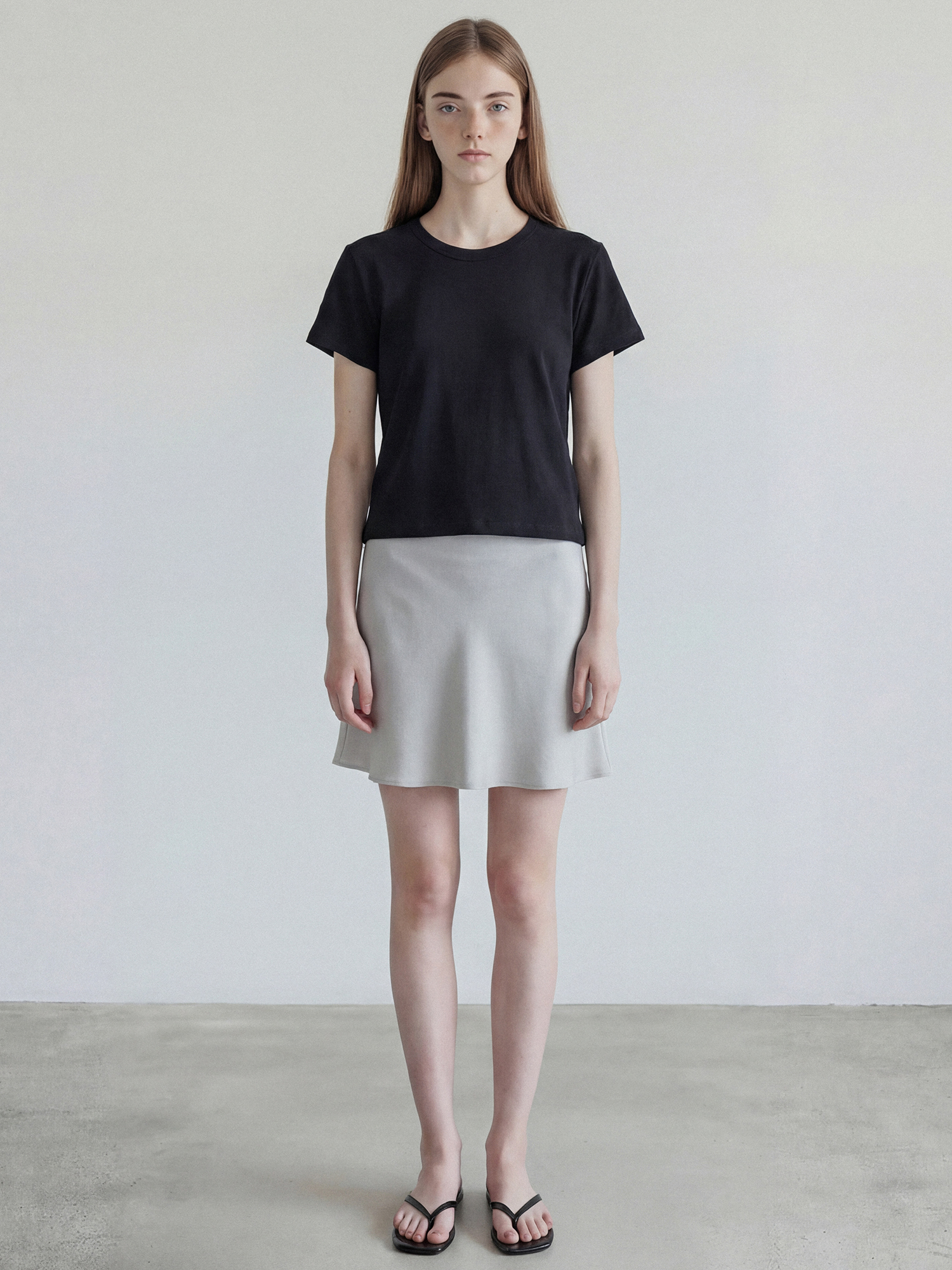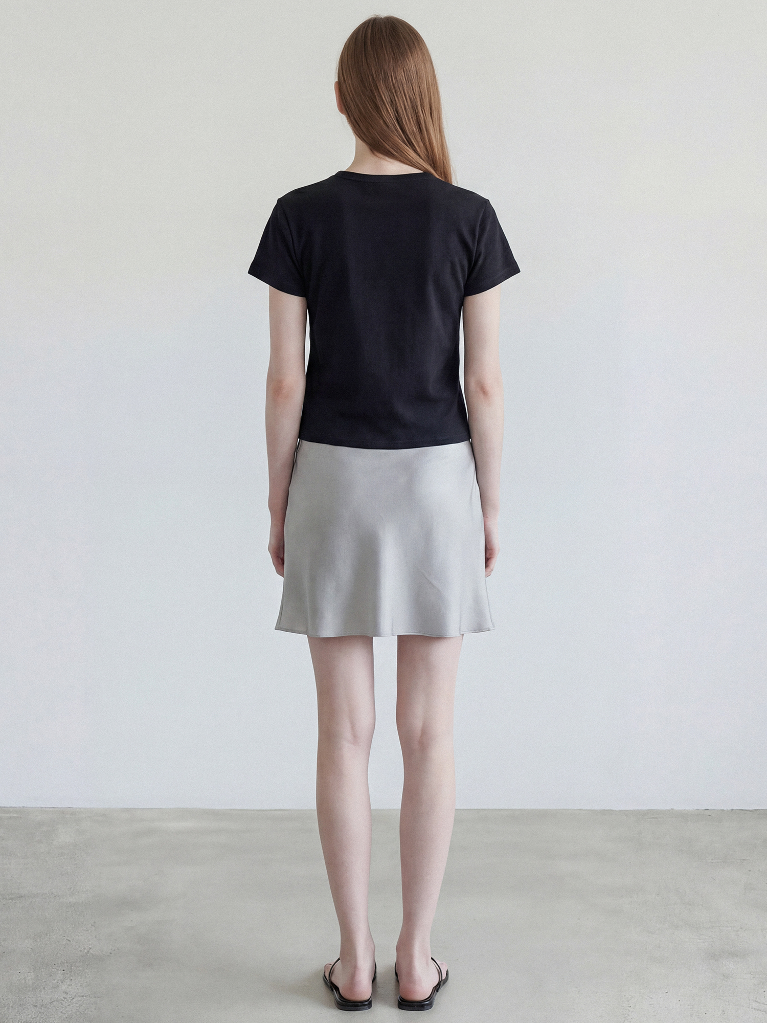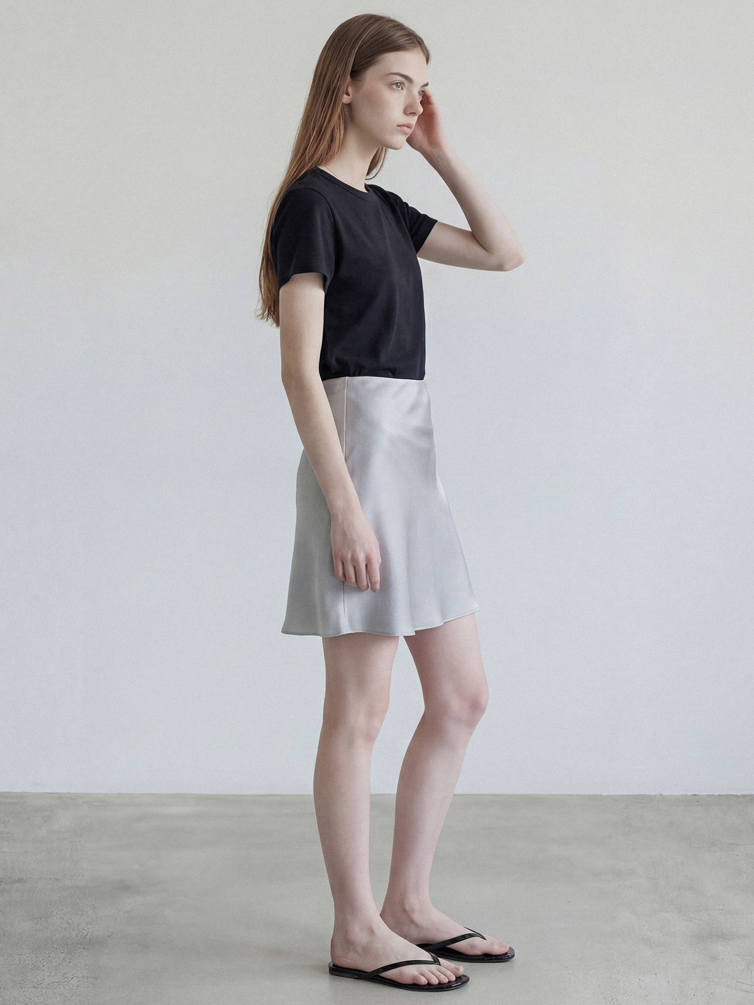짧은 기장이지만 부담스럽지 않은 핏과 움직일 때마다 은은하게 살아나는 새틴 특유의 결이