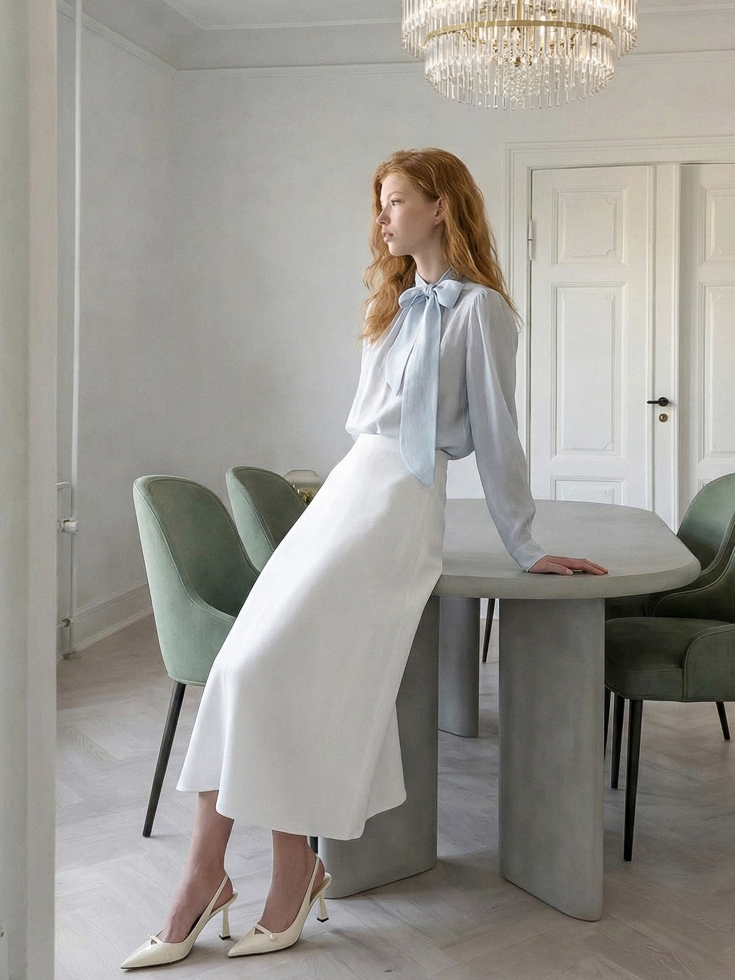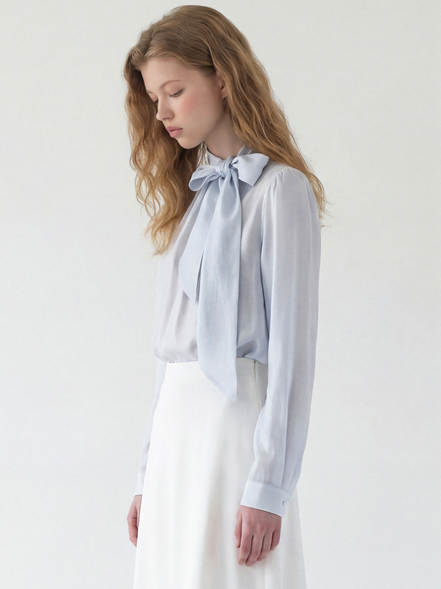 셔링 타이 블라우스_SKY BLUE