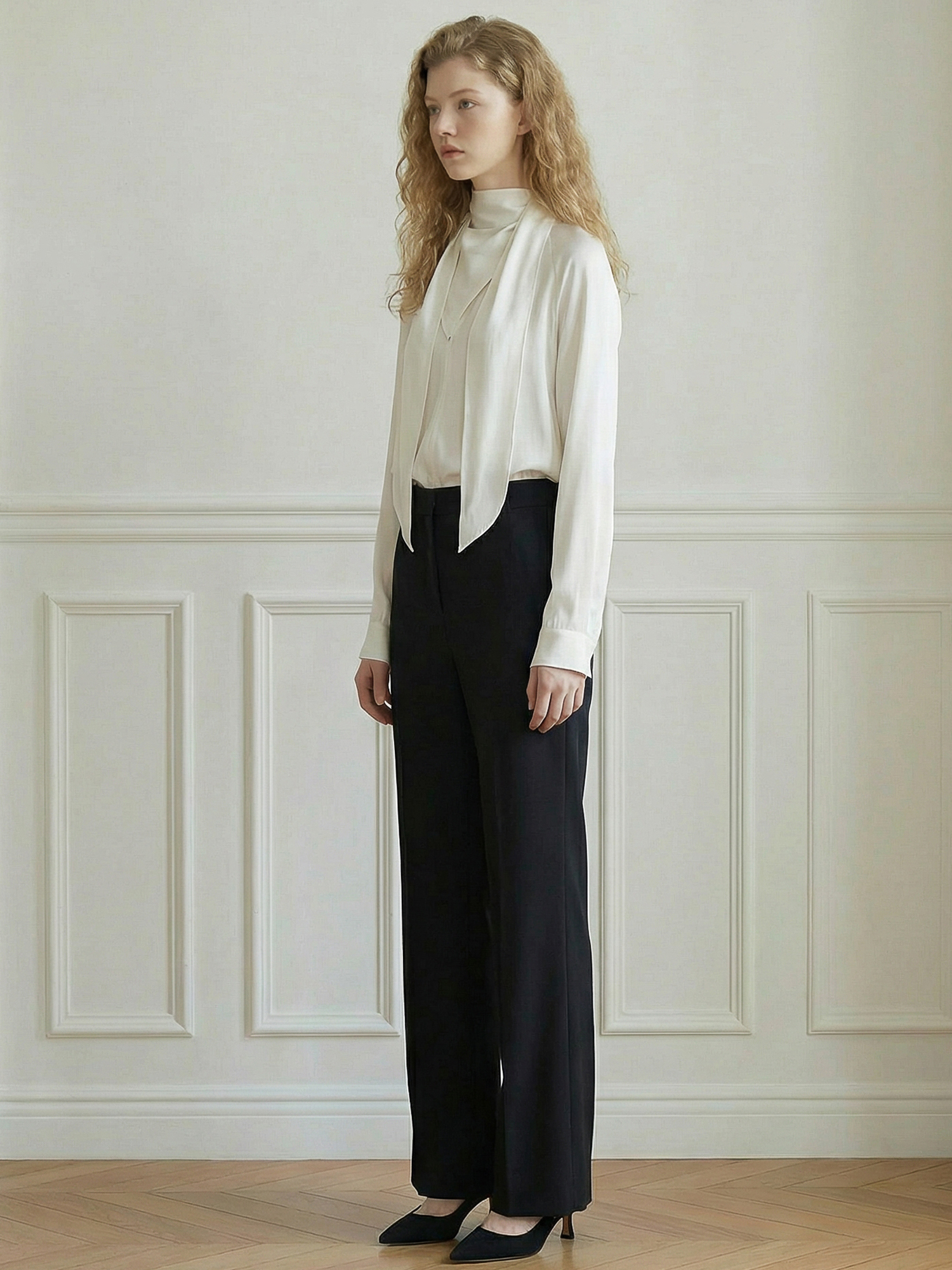 부드럽게 떨어지는 실루엣이 고급스러운 블라우스입니다.