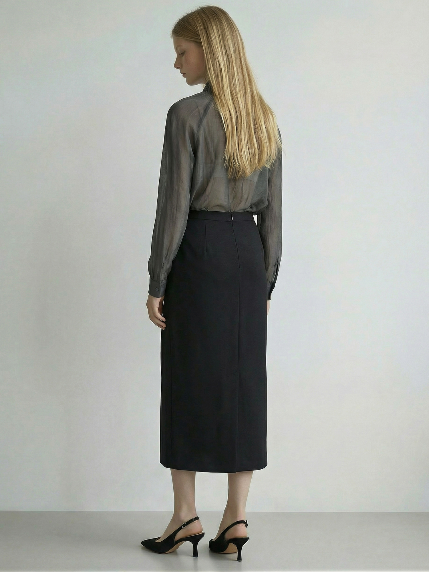 시어한 비침이 있는 여성스러운 무드의 블라우스입니다.