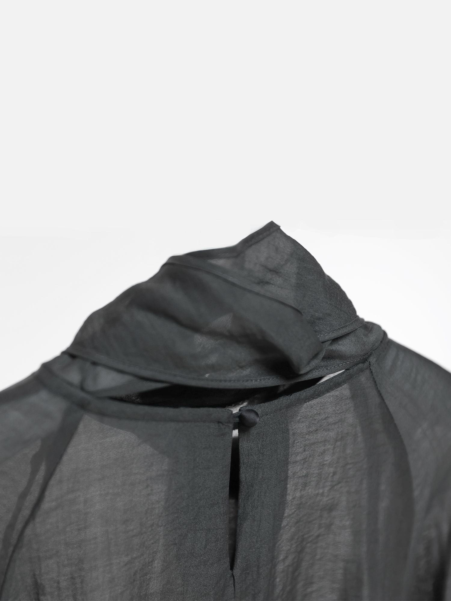 뒷목과 소매의 원단으로 감싼 버튼으로 착용합니다.