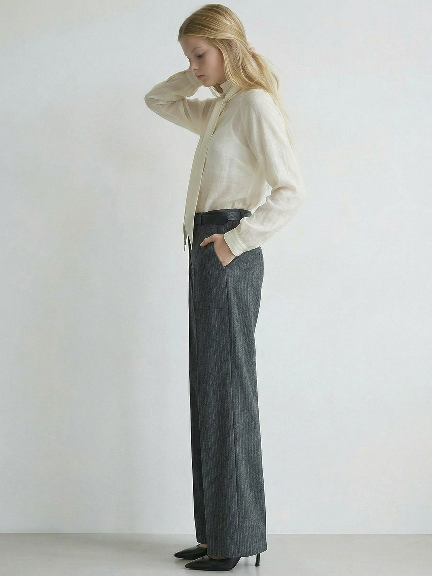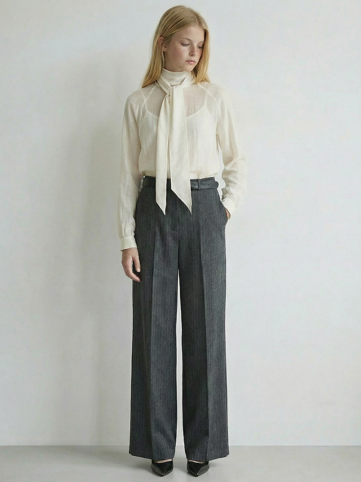 스카프넥 시어 블라우스_CREAM