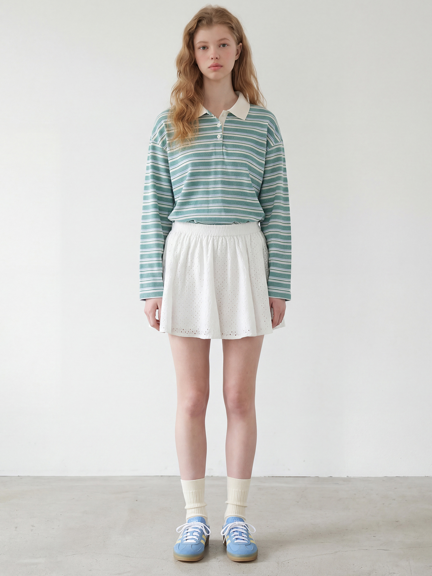 스커트나 쇼츠, 데님 등 다양한 하의와 매치하기 좋은 아이템입니다.