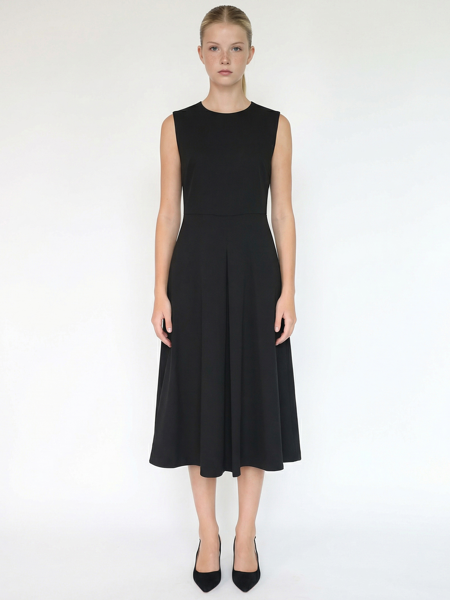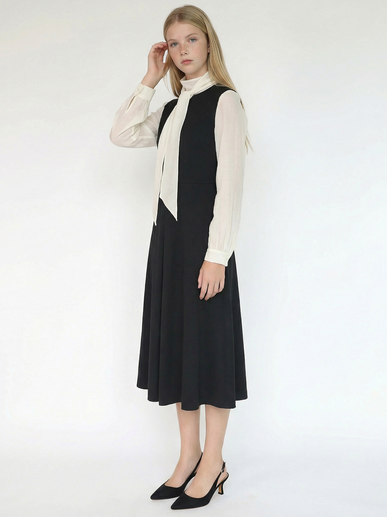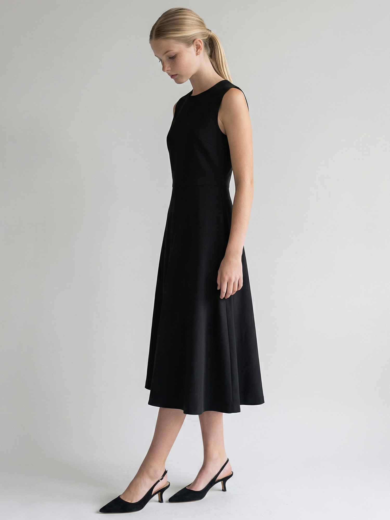 하객이나 중요행사에 적합한 클래식한 디자인의 미디 드레스입니다.