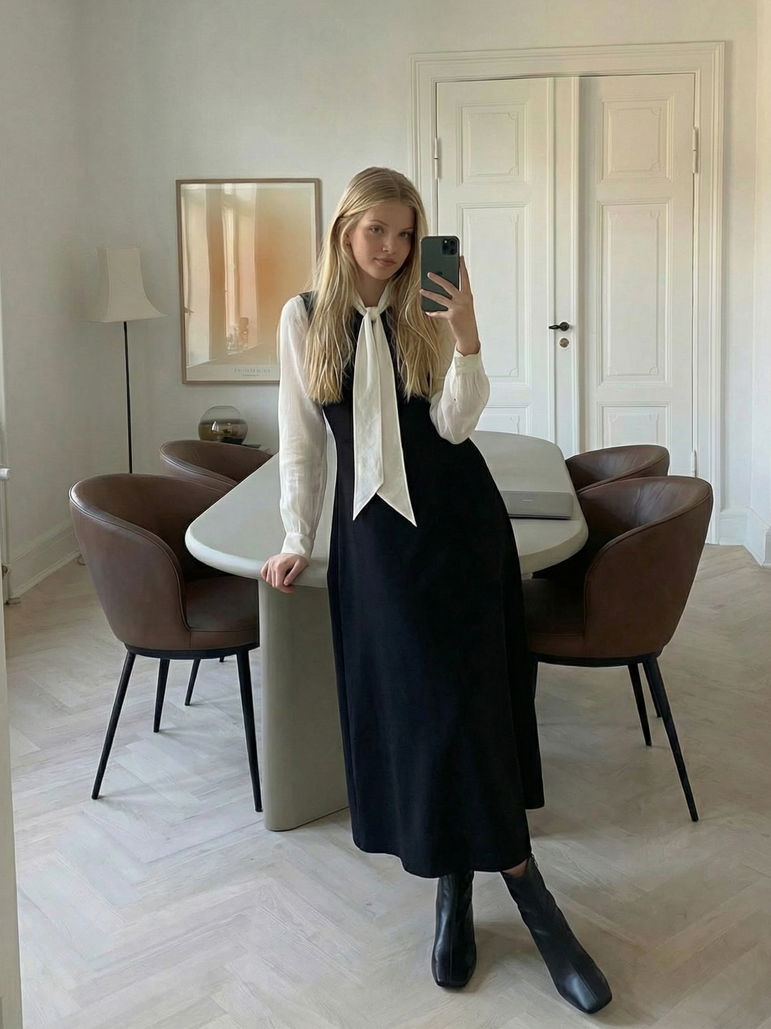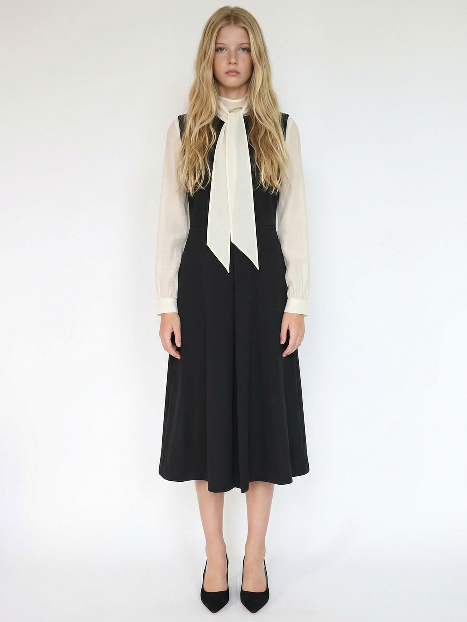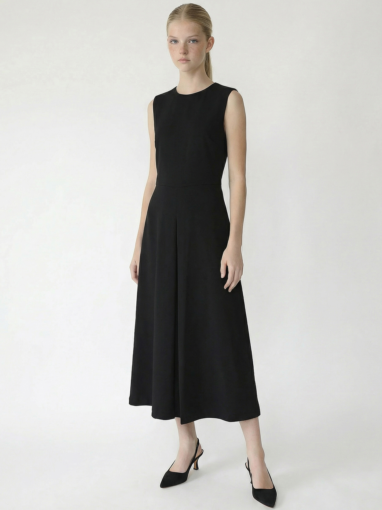 하객이나 중요행사에 적합한 클래식한 디자인의 미디 드레스입니다.