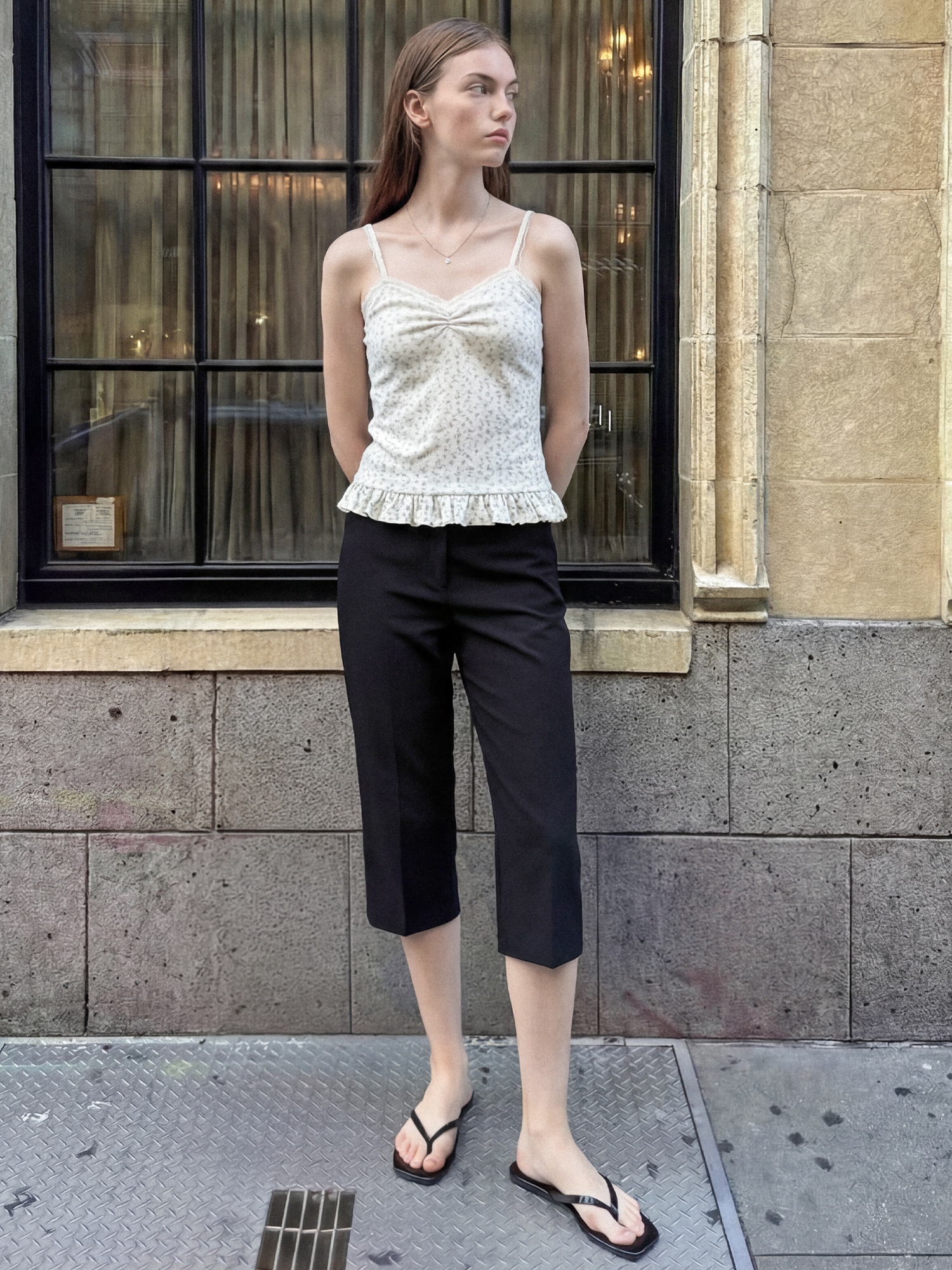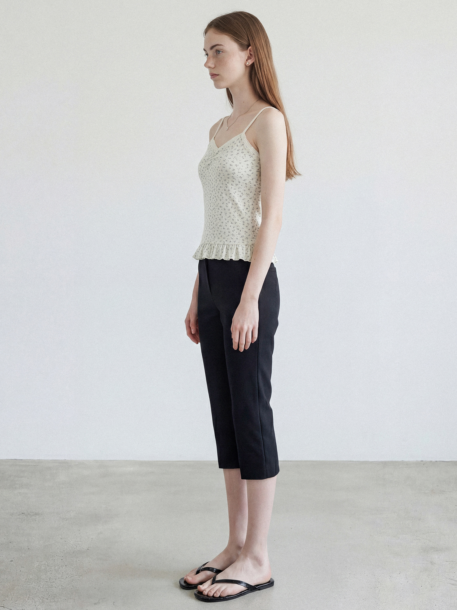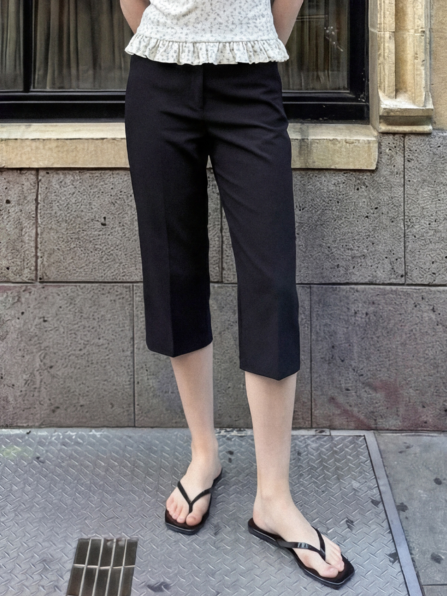 클래식한 디자인의 카프리 팬츠입니다.