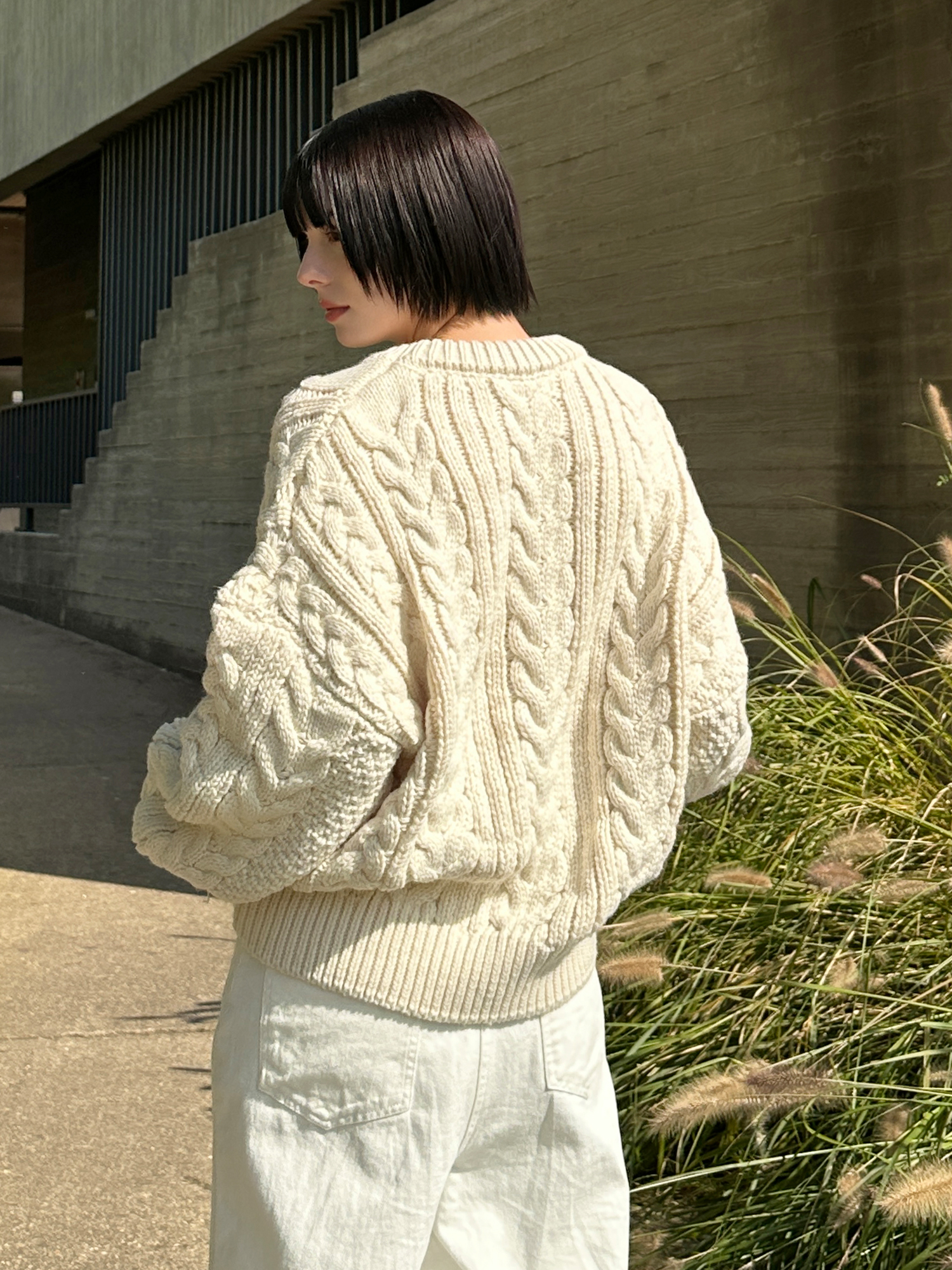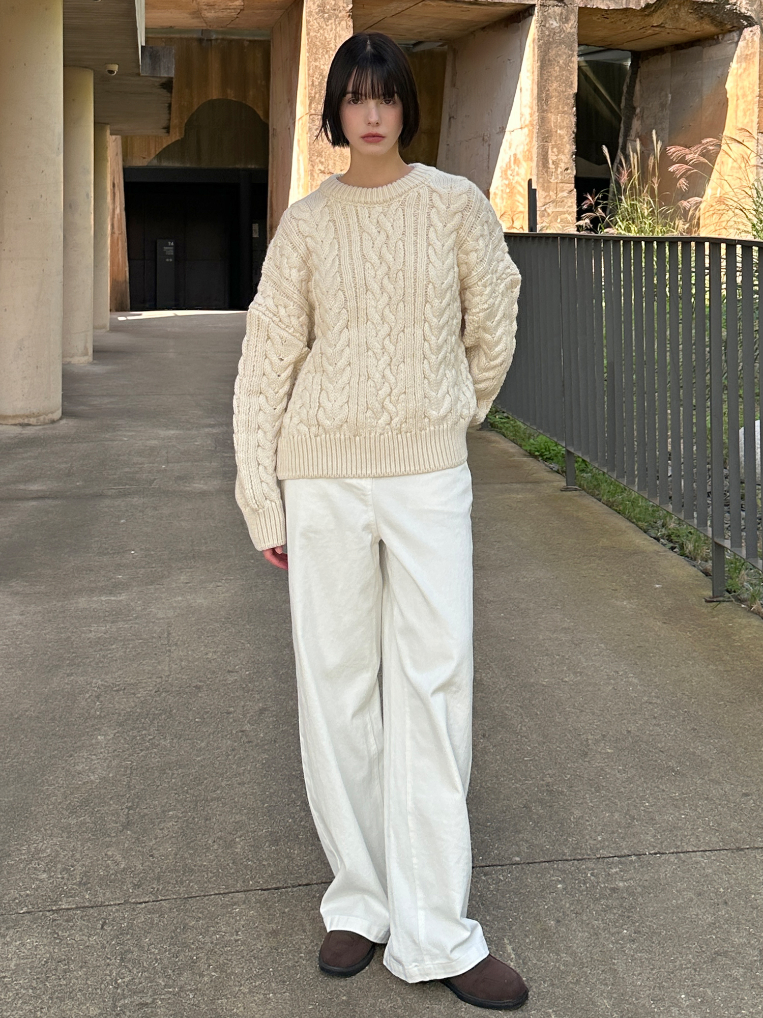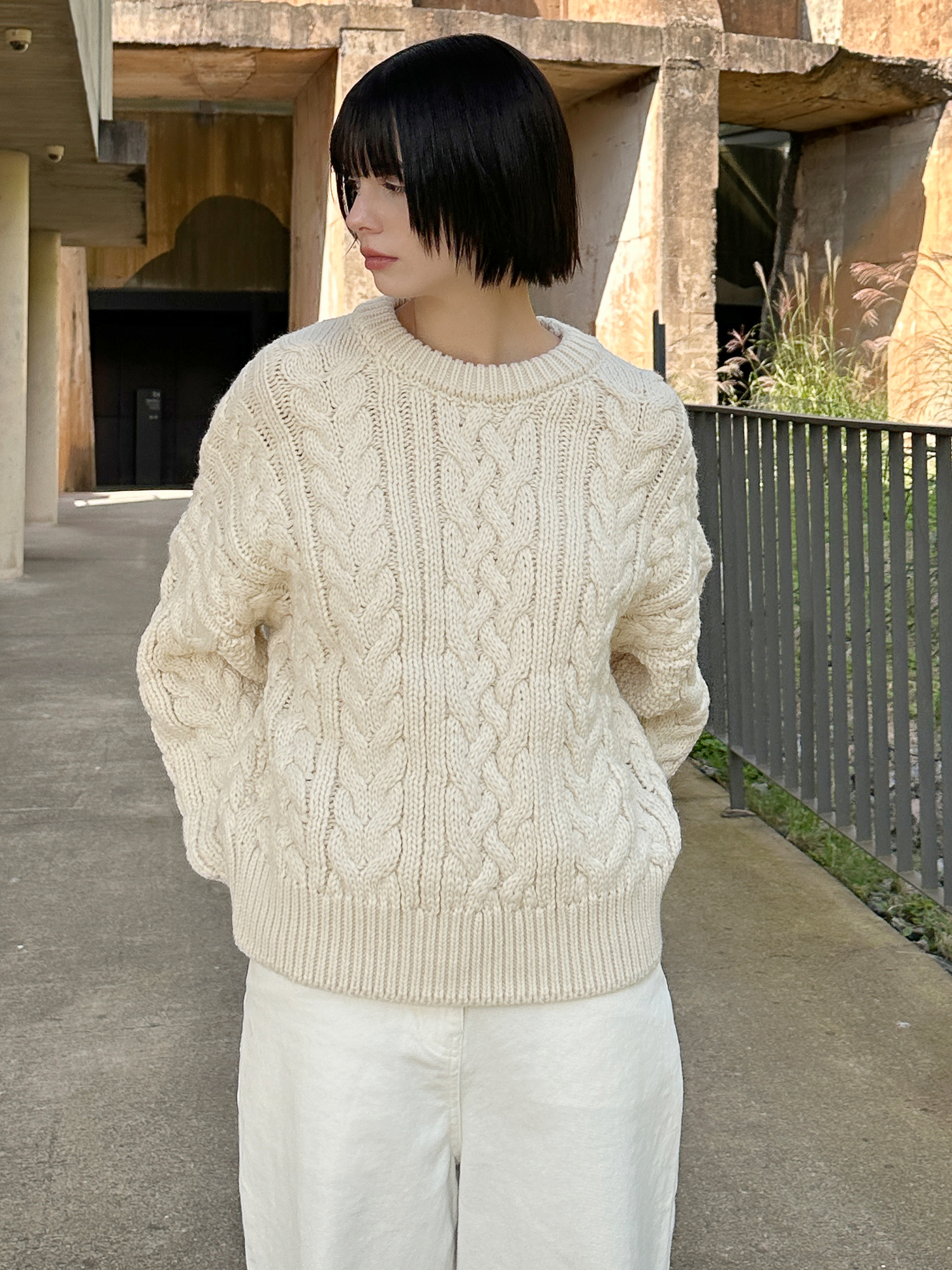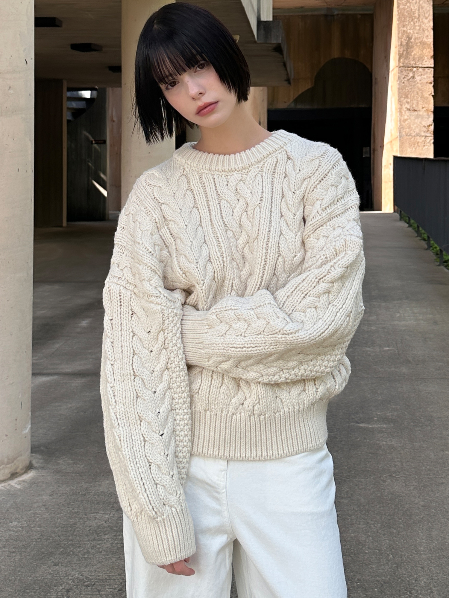 오버사이즈 피셔맨 케이블 니트_IVORY