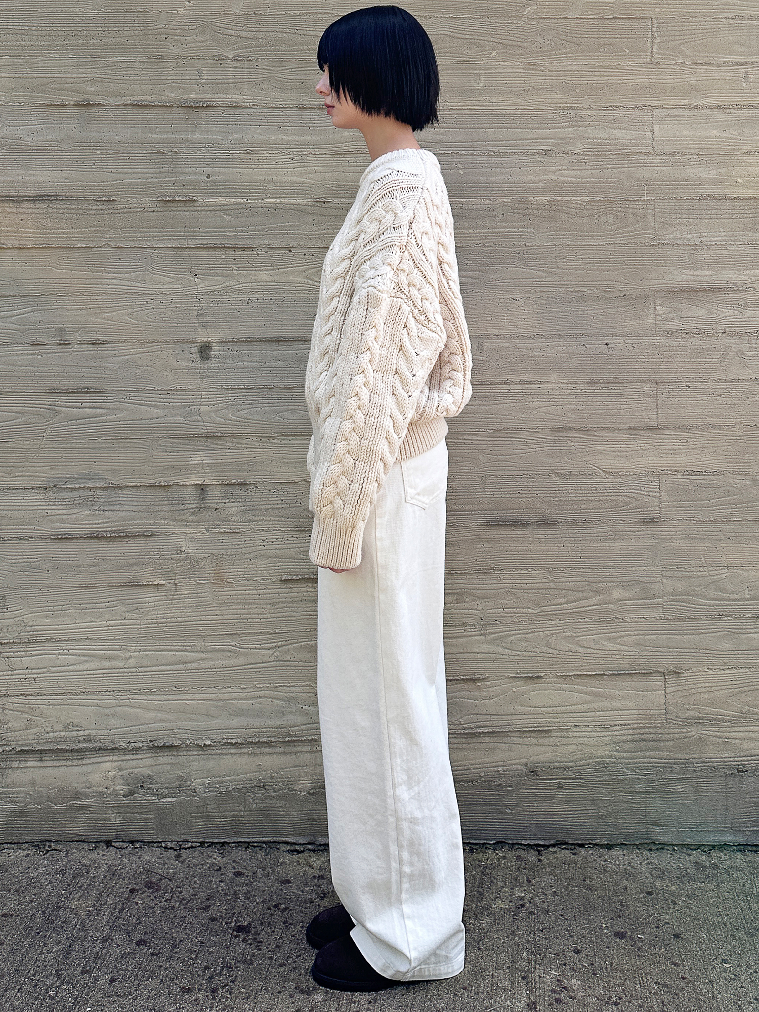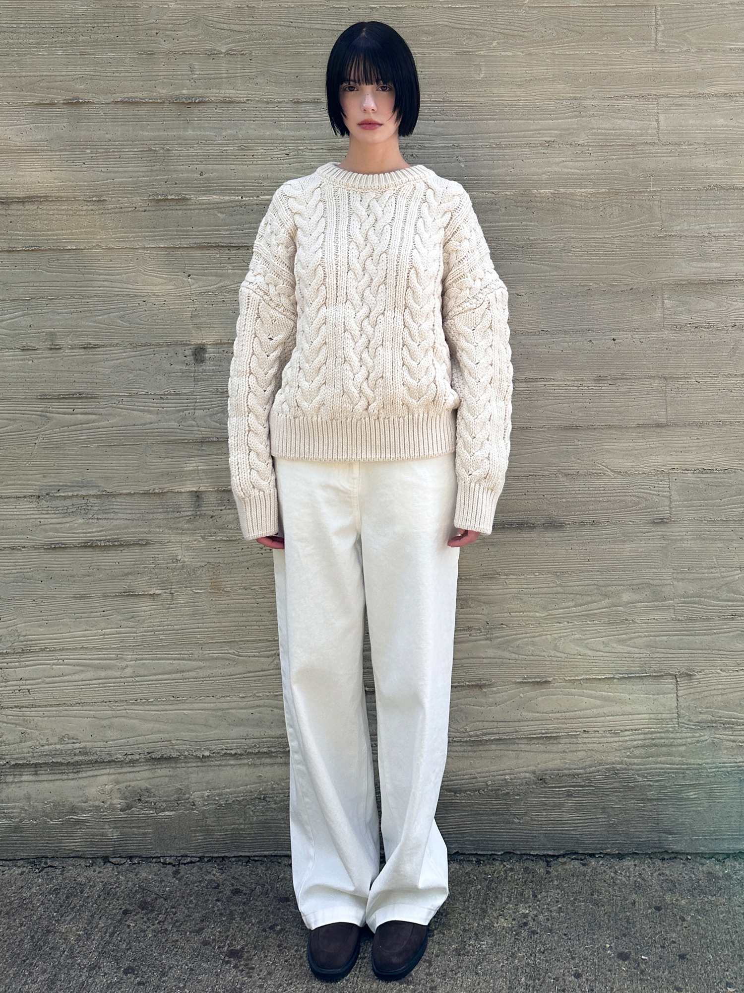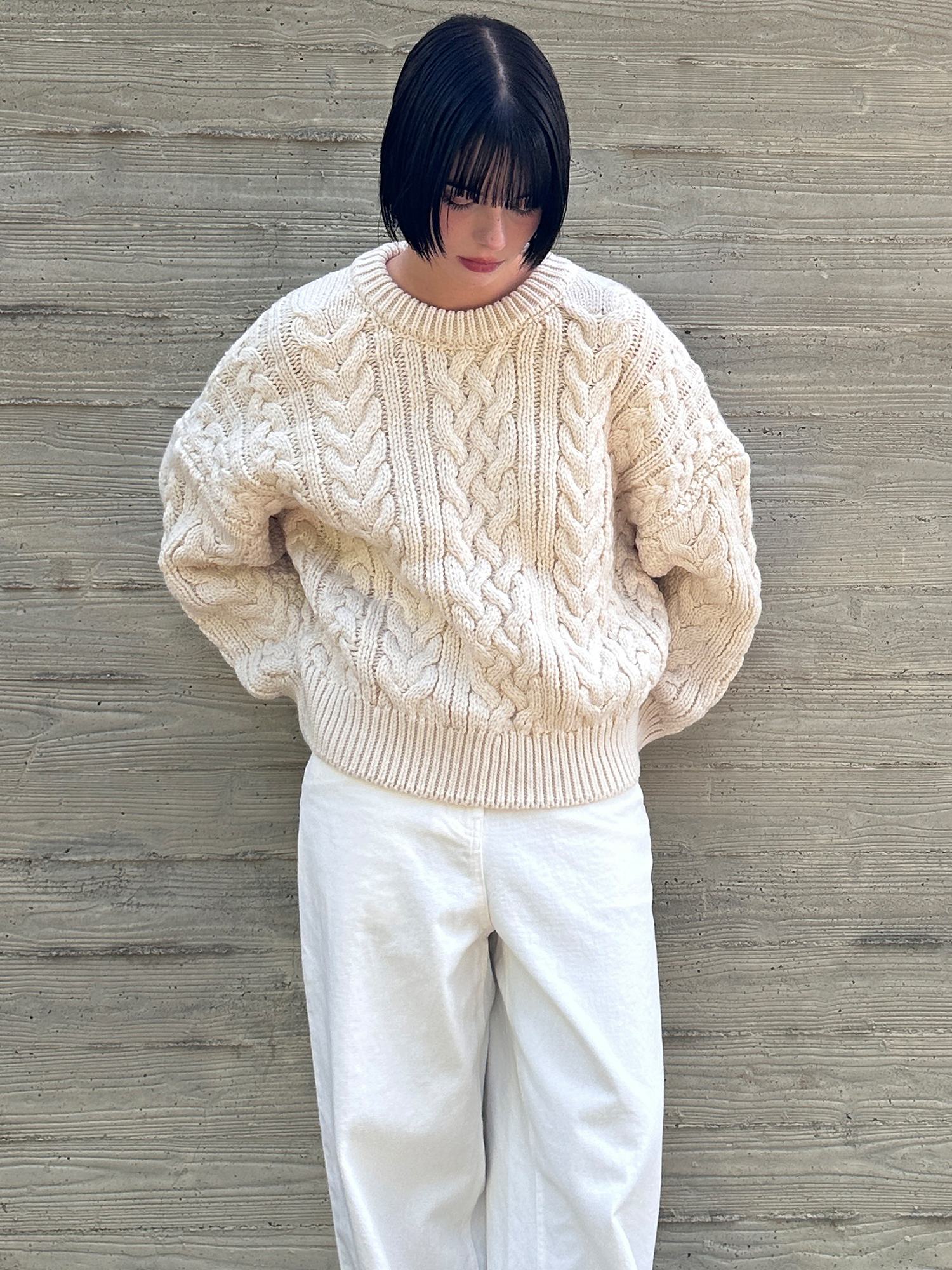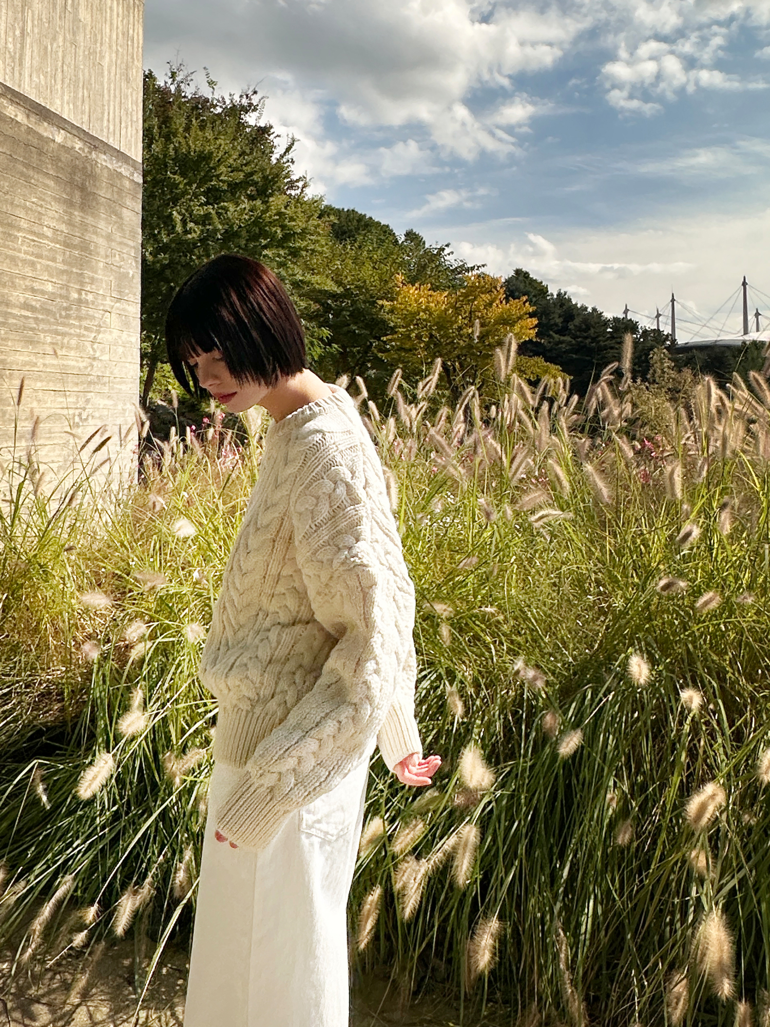 오버사이즈 피셔맨 케이블 니트_IVORY