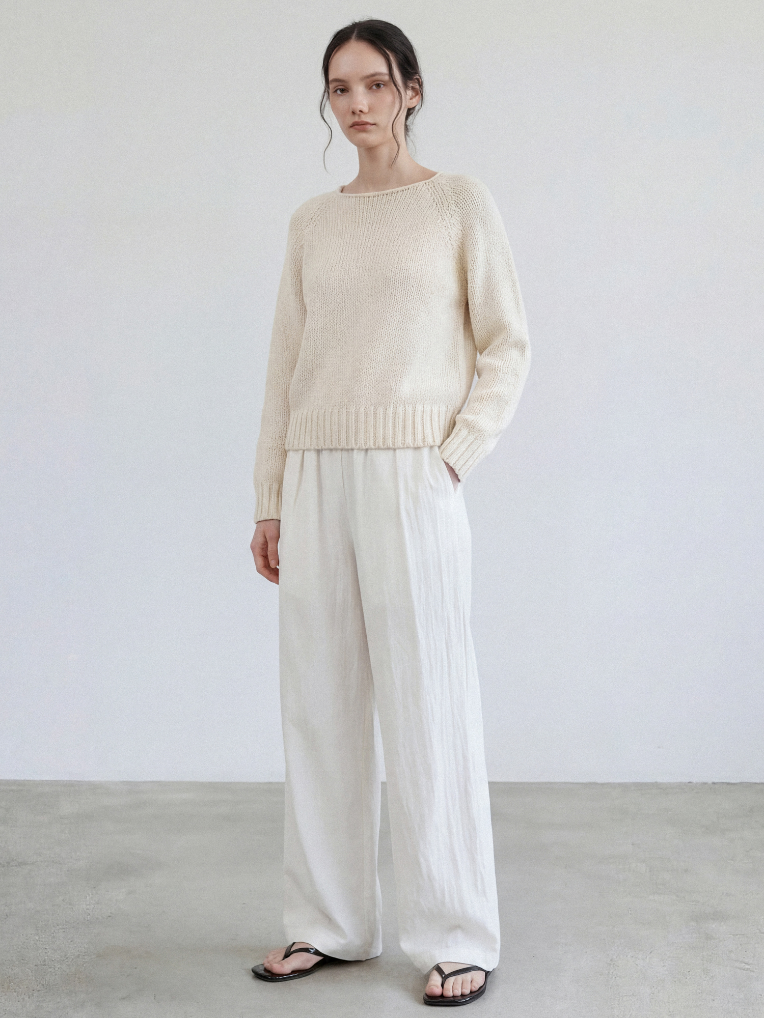 보트넥과 래글런 슬리브로 릴렉스한 핏이며