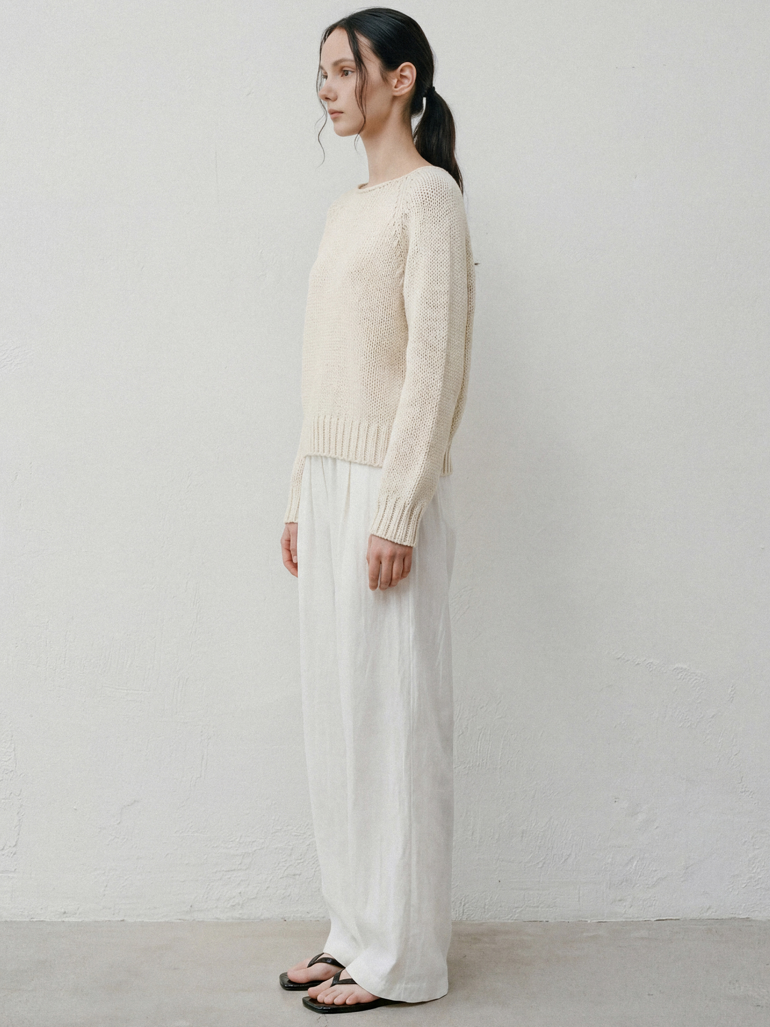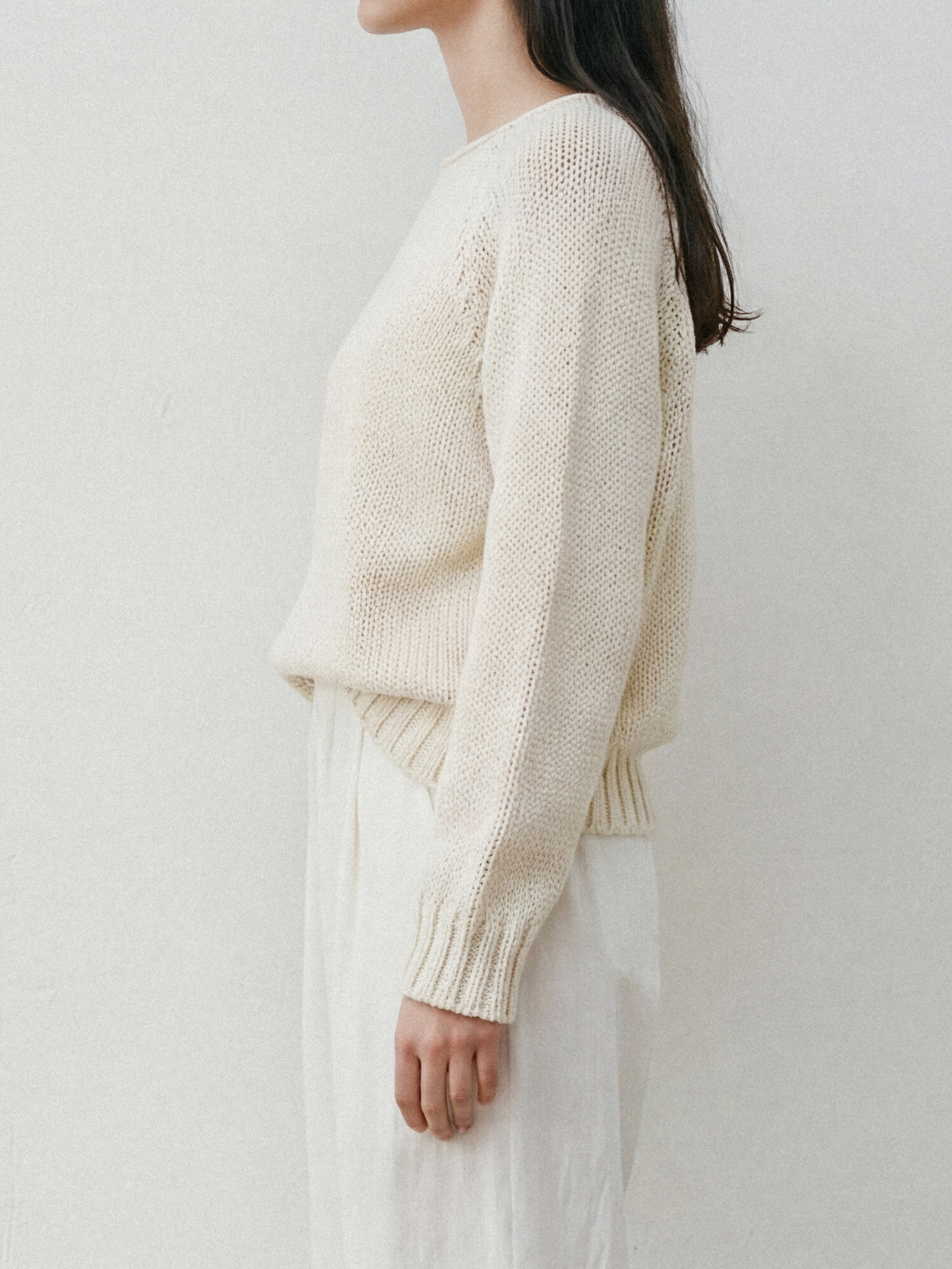성글게 짜여진 텍스쳐가 느림의 미학을 느끼게 하는 니트입니다.
