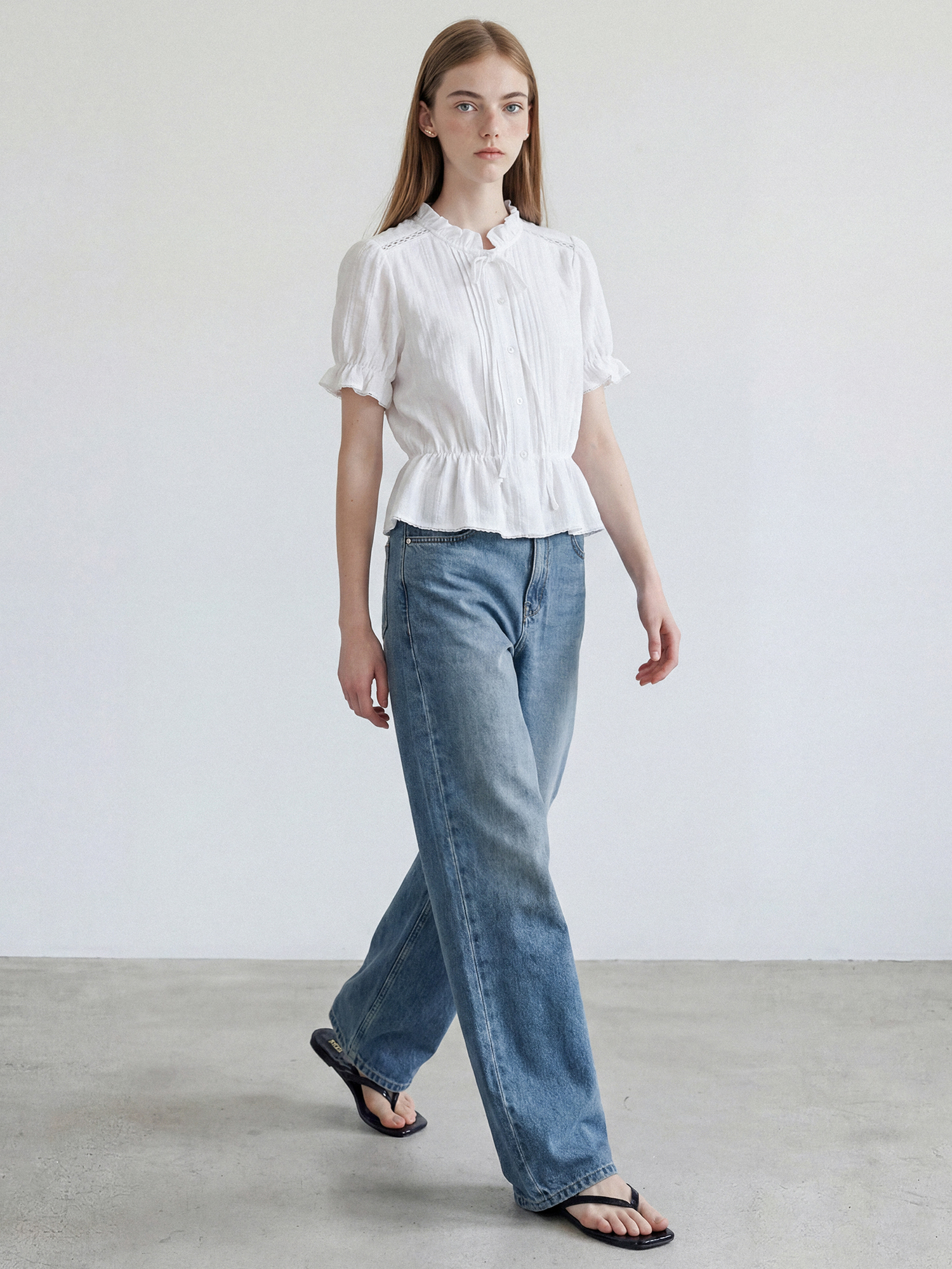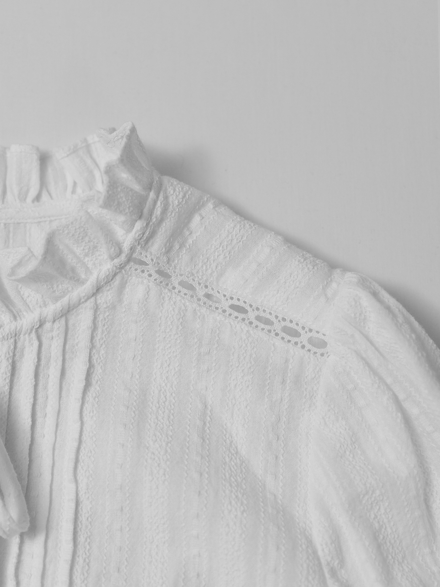 섬세한 디테일이 자연스럽게 돋보이는 코튼 레이스 핀턱 블라우스입니다.