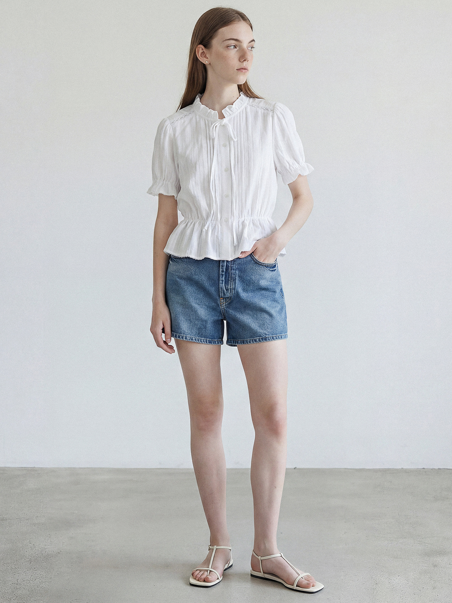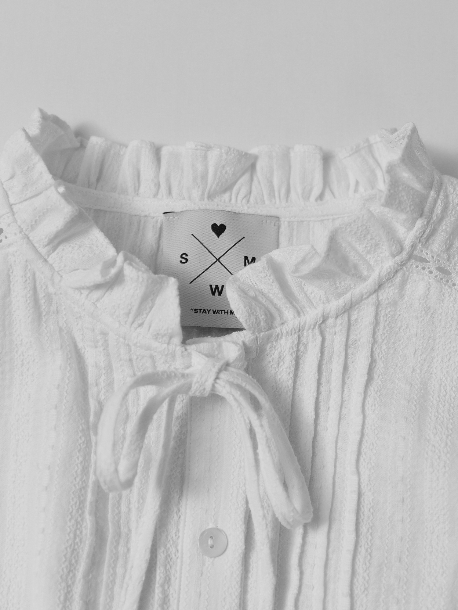 가볍고 부드러운 코튼 소재 위에 프론트 핀턱과 레이스 디테일을 더해