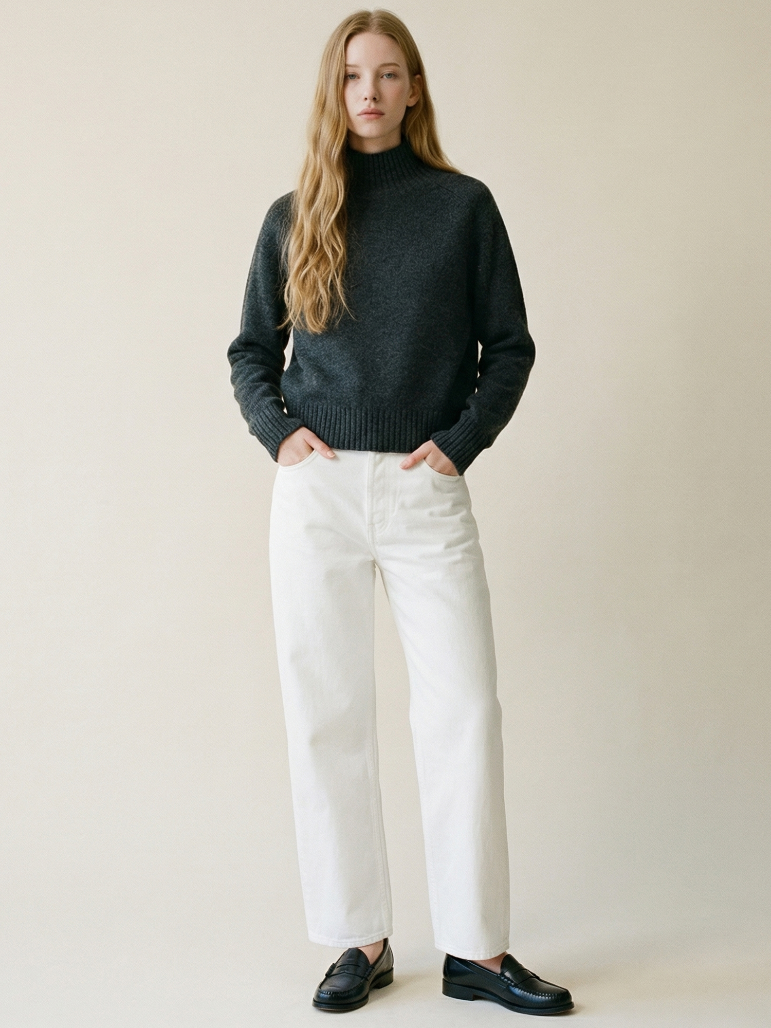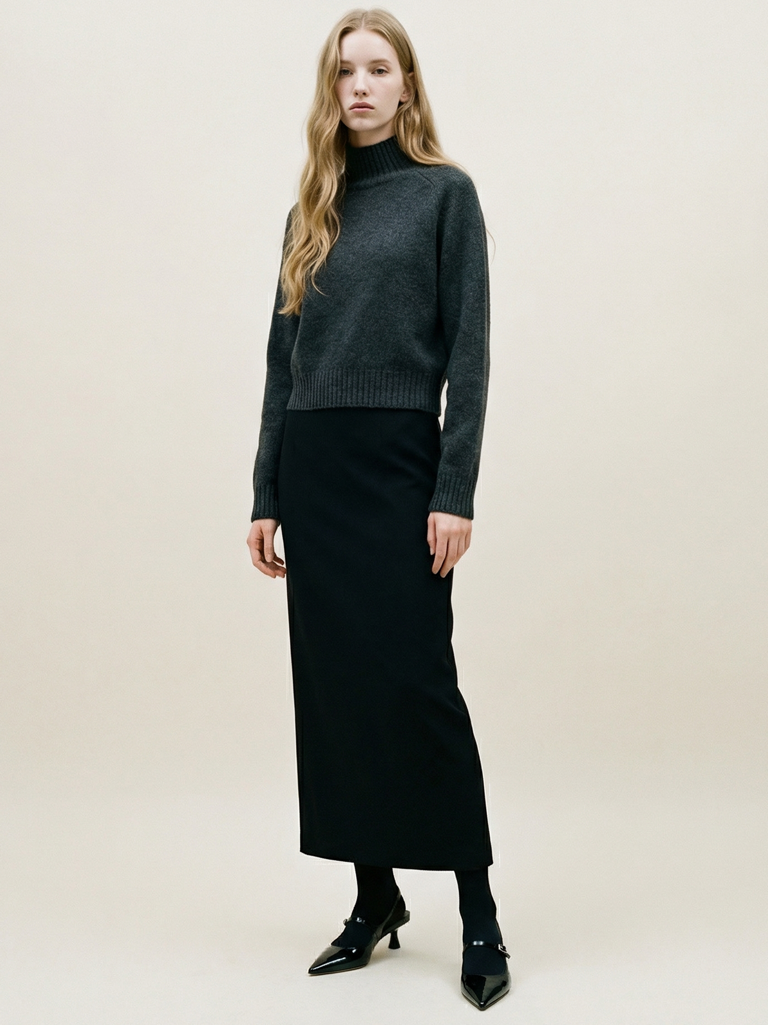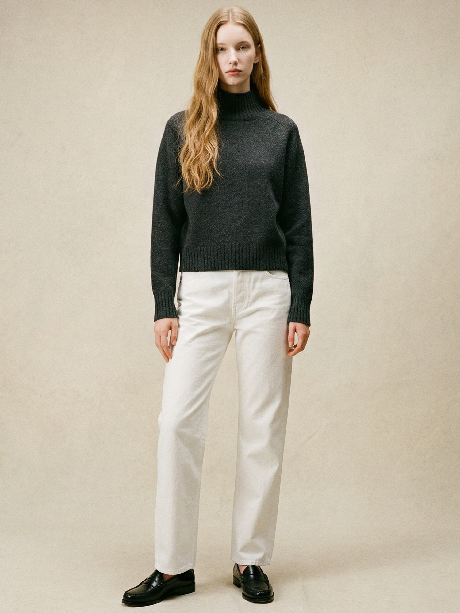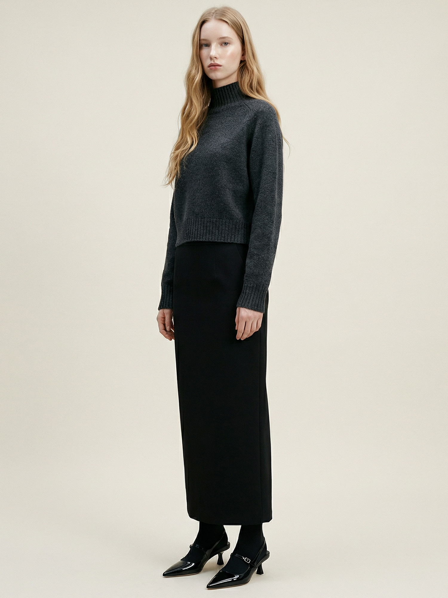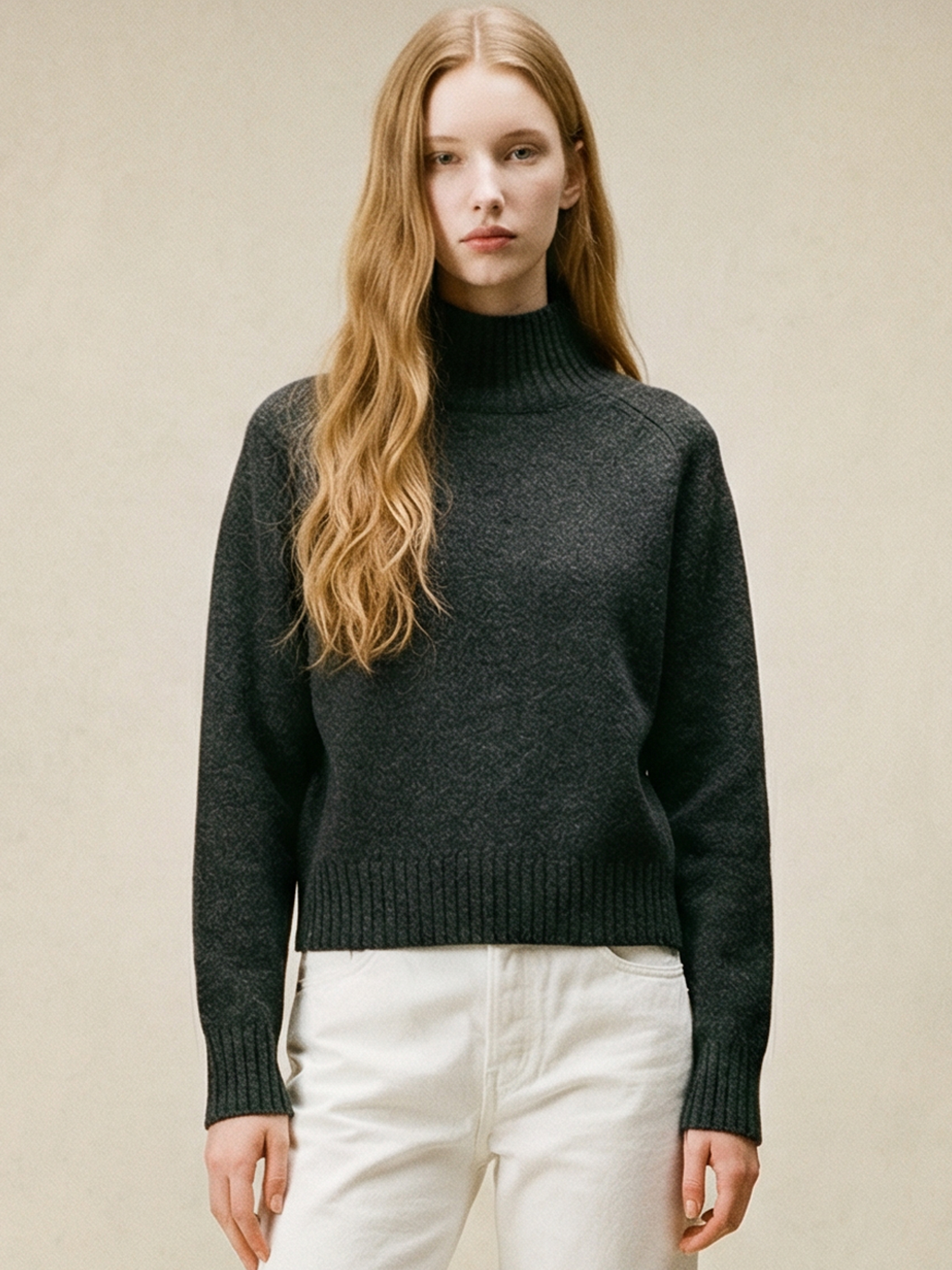 파인울 하프넥 스웨터_CHARCOAL GREY