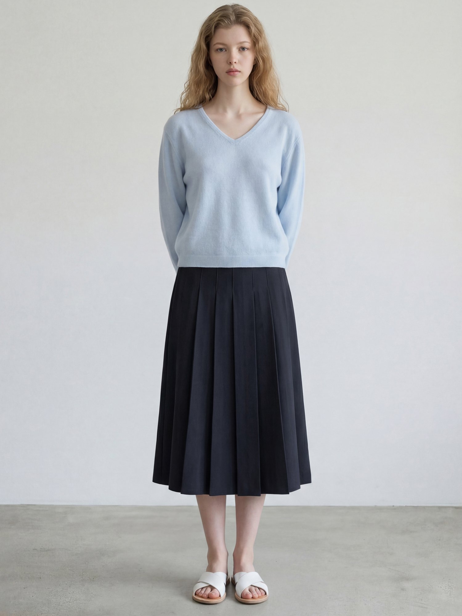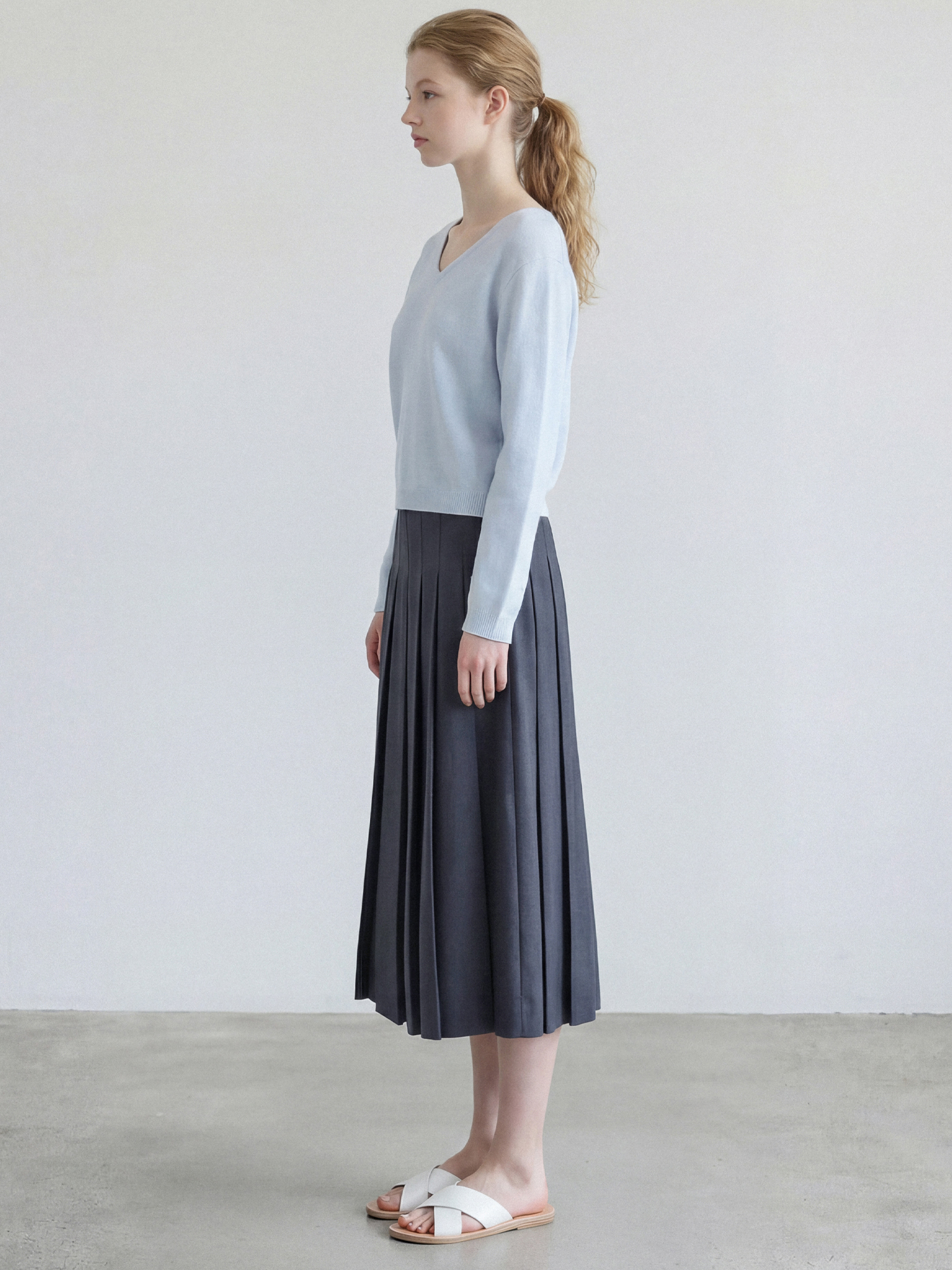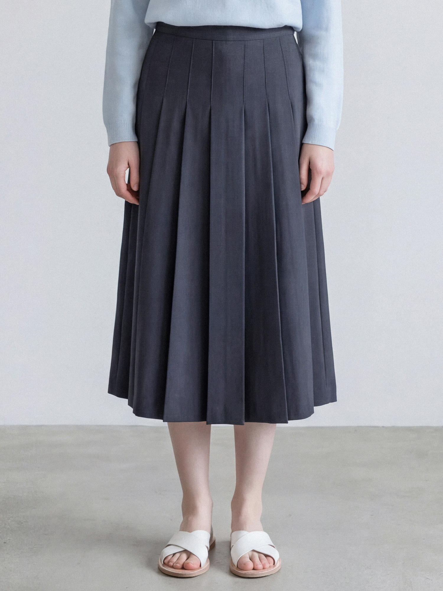 탄탄한 폴리 혼방소재로 제작하여 구김이 적고 플리츠의 흐트러짐 없이 잘 유지됩니다.