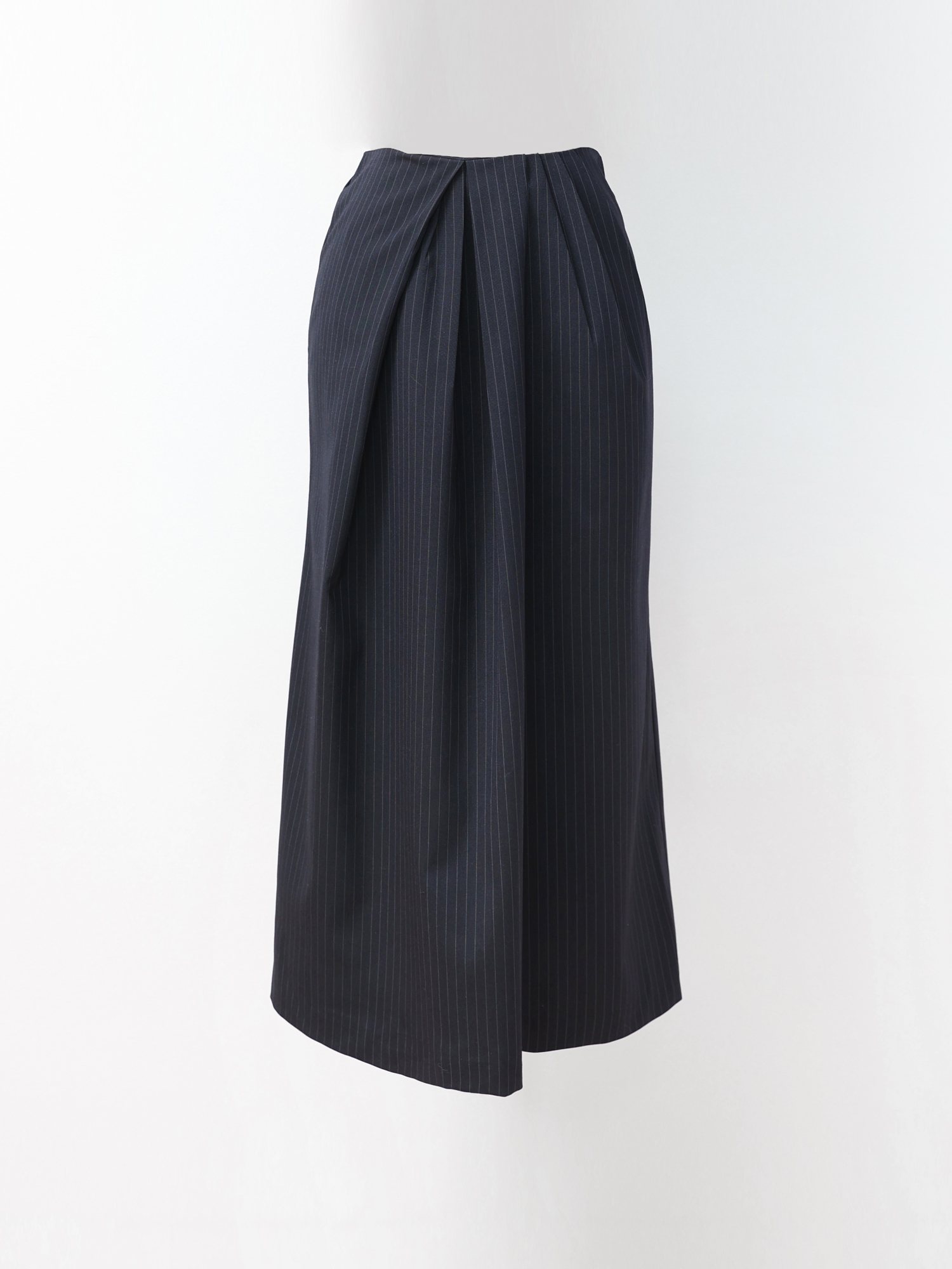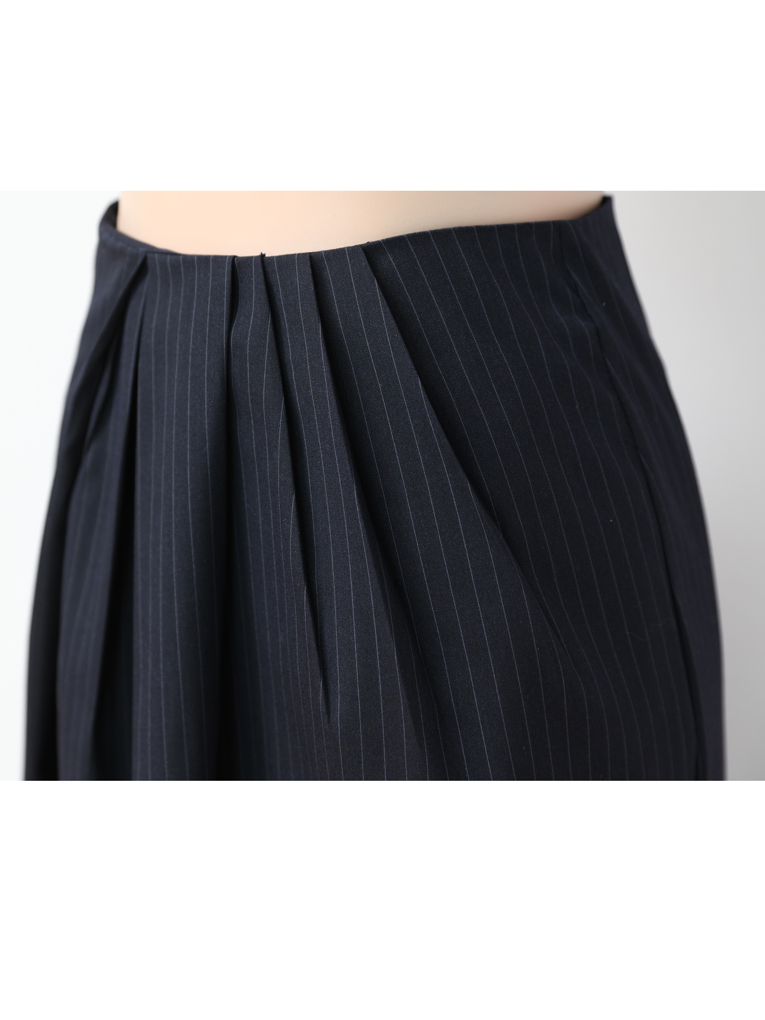 클래식한 핀스트라이프 소재로 제작한 스커트입니다.