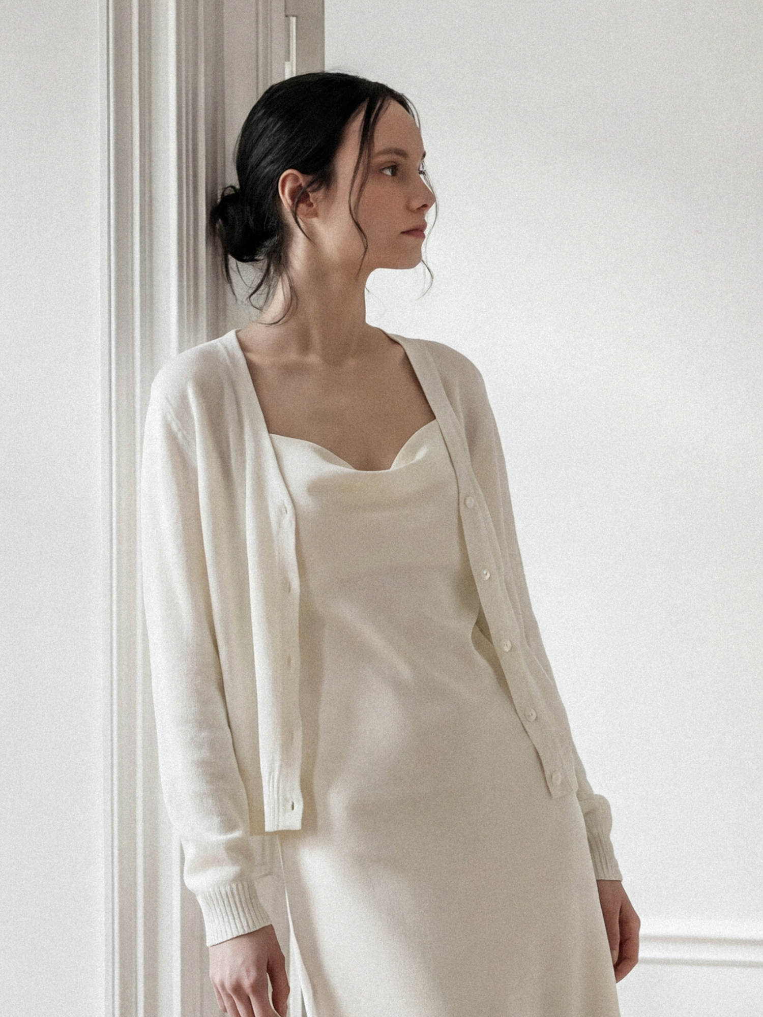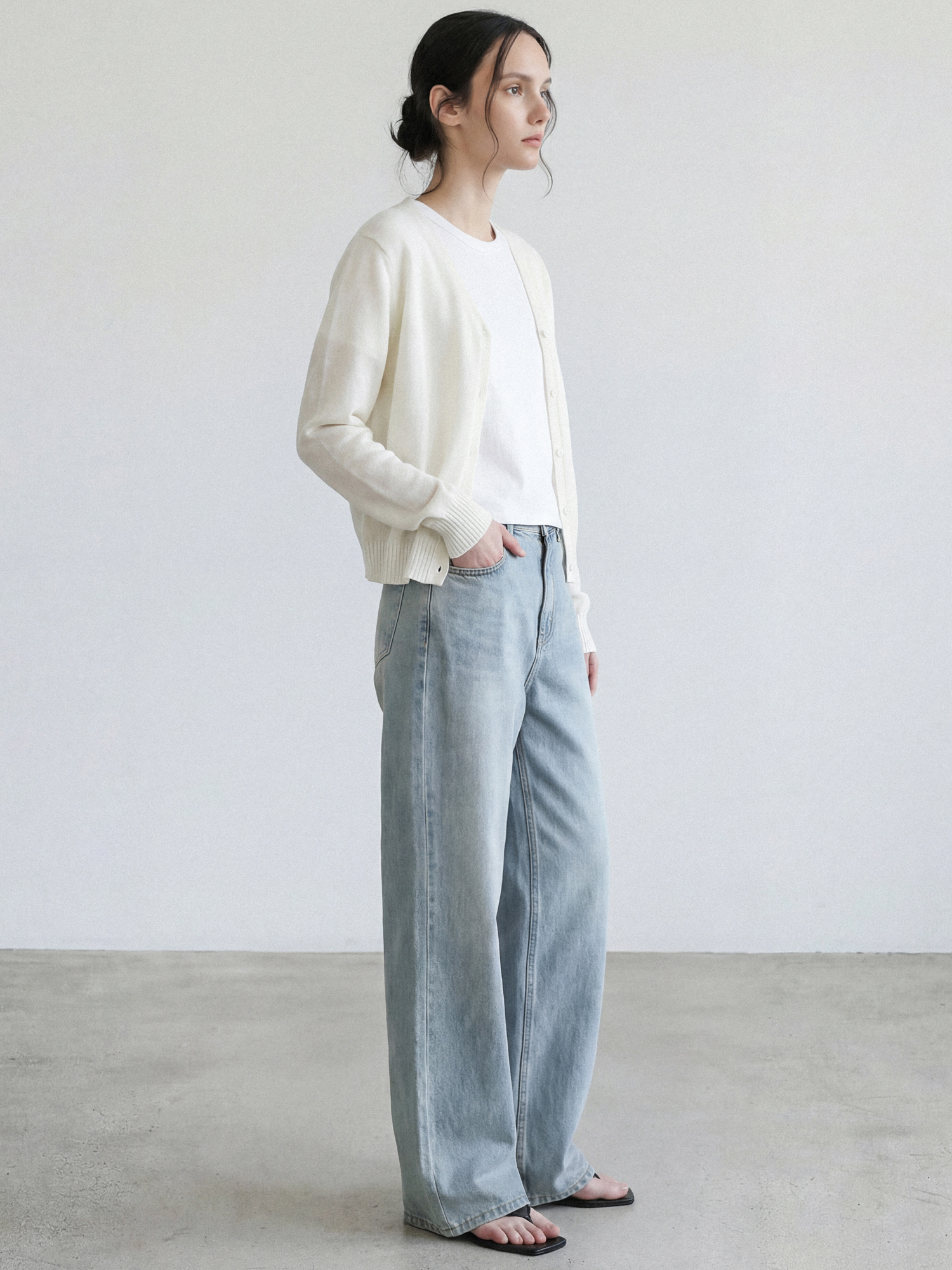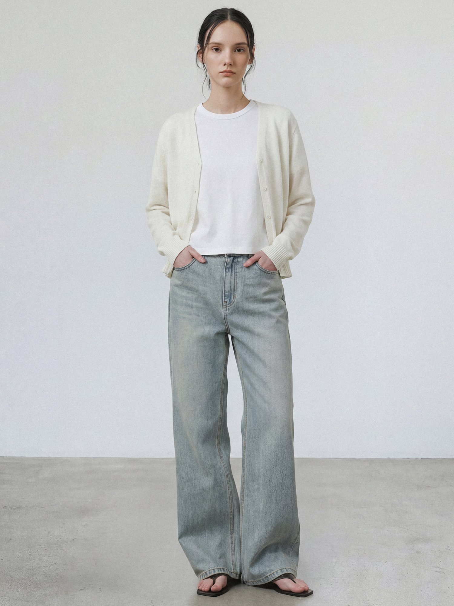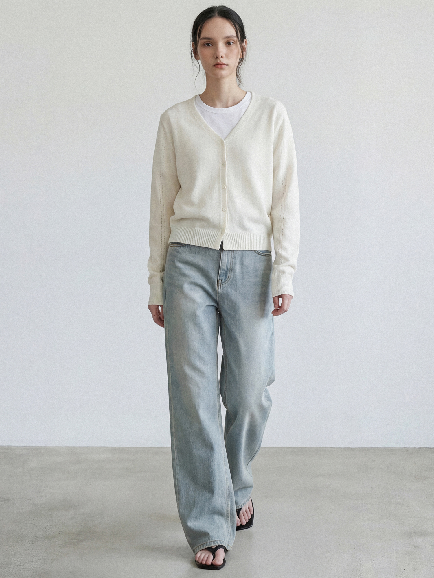 홀가먼트 브이넥 가디건_CREAM