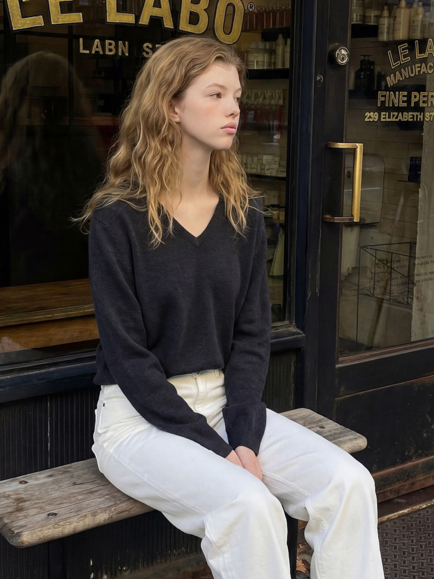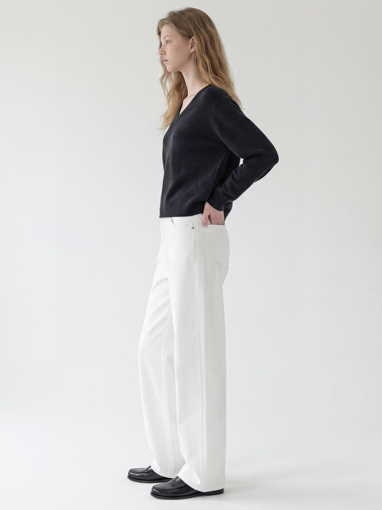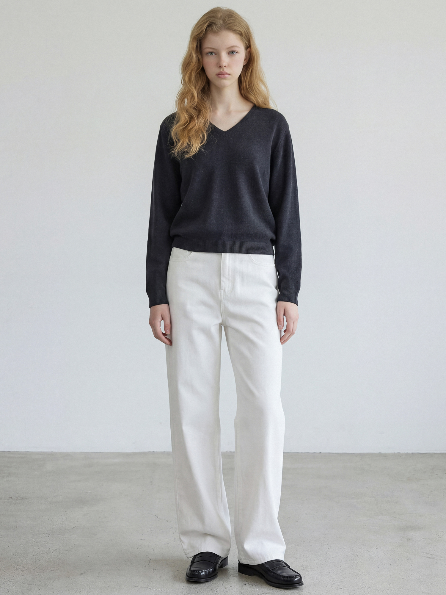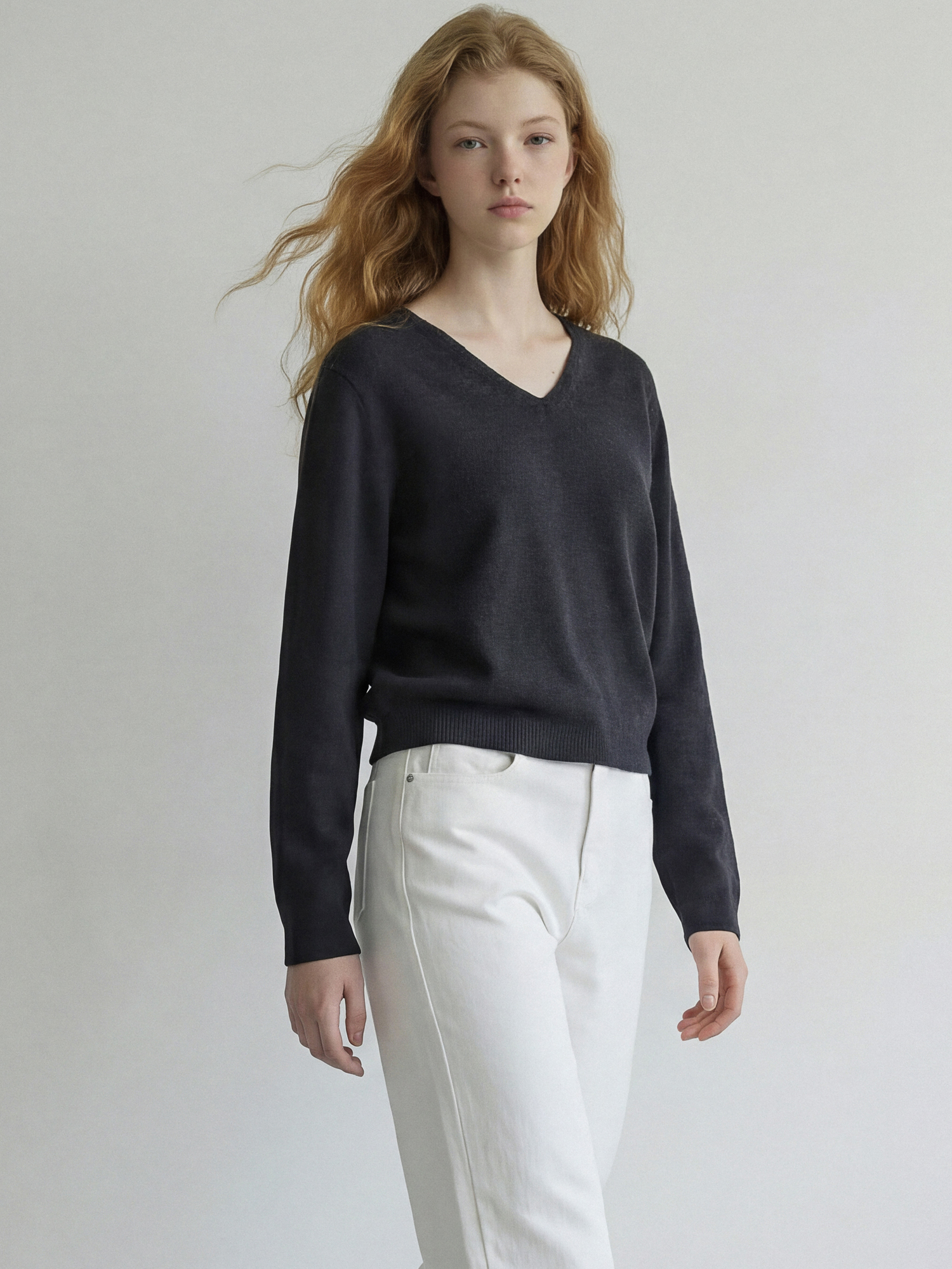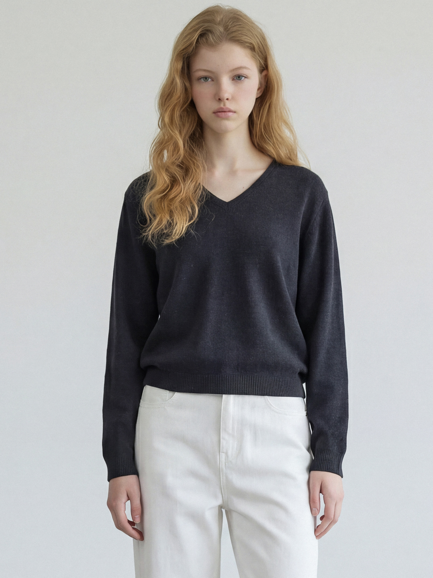 울100% 원사로 제직한 브이넥 니트입니다.