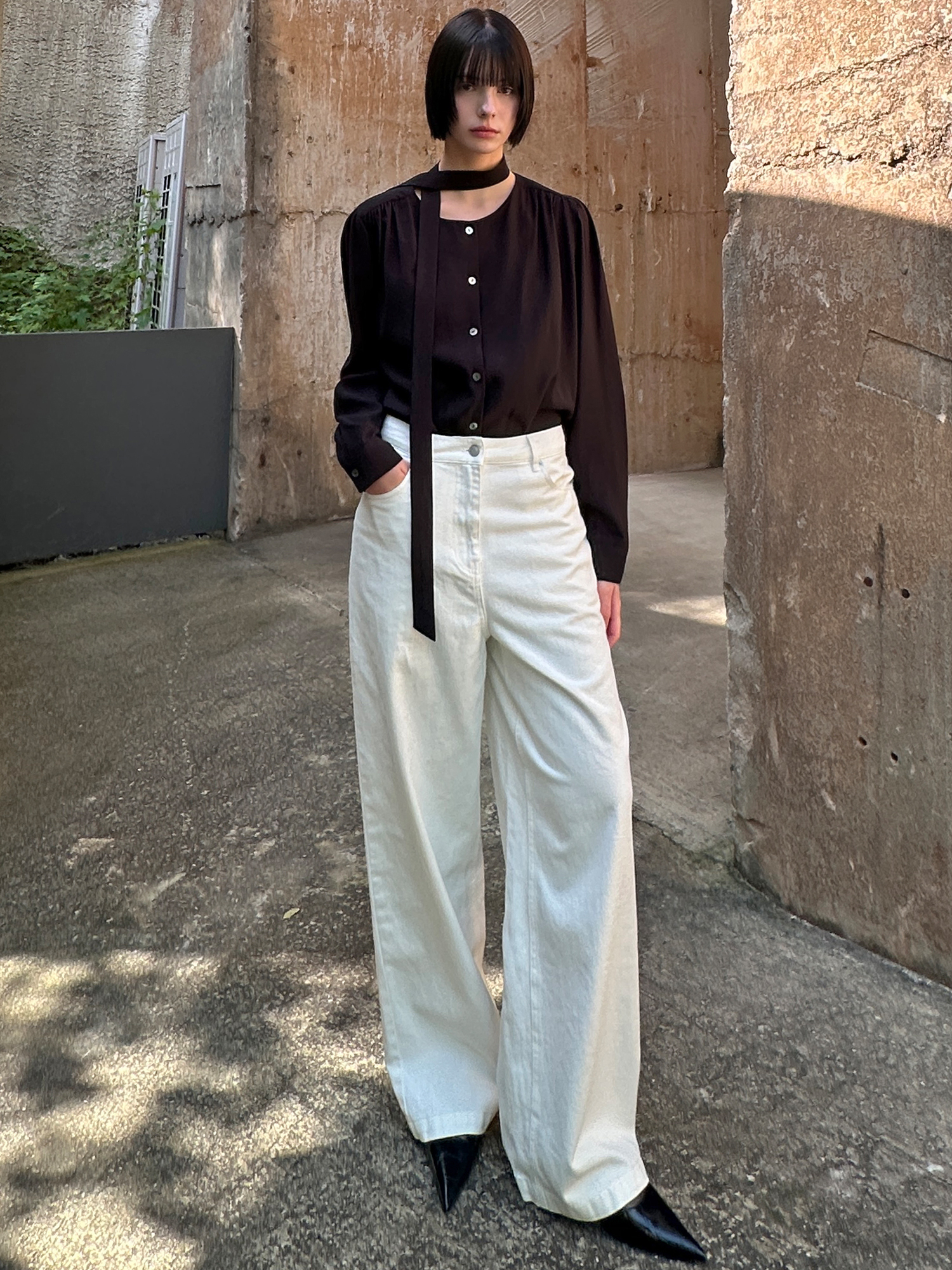 리본타이 블라우스_CREAM